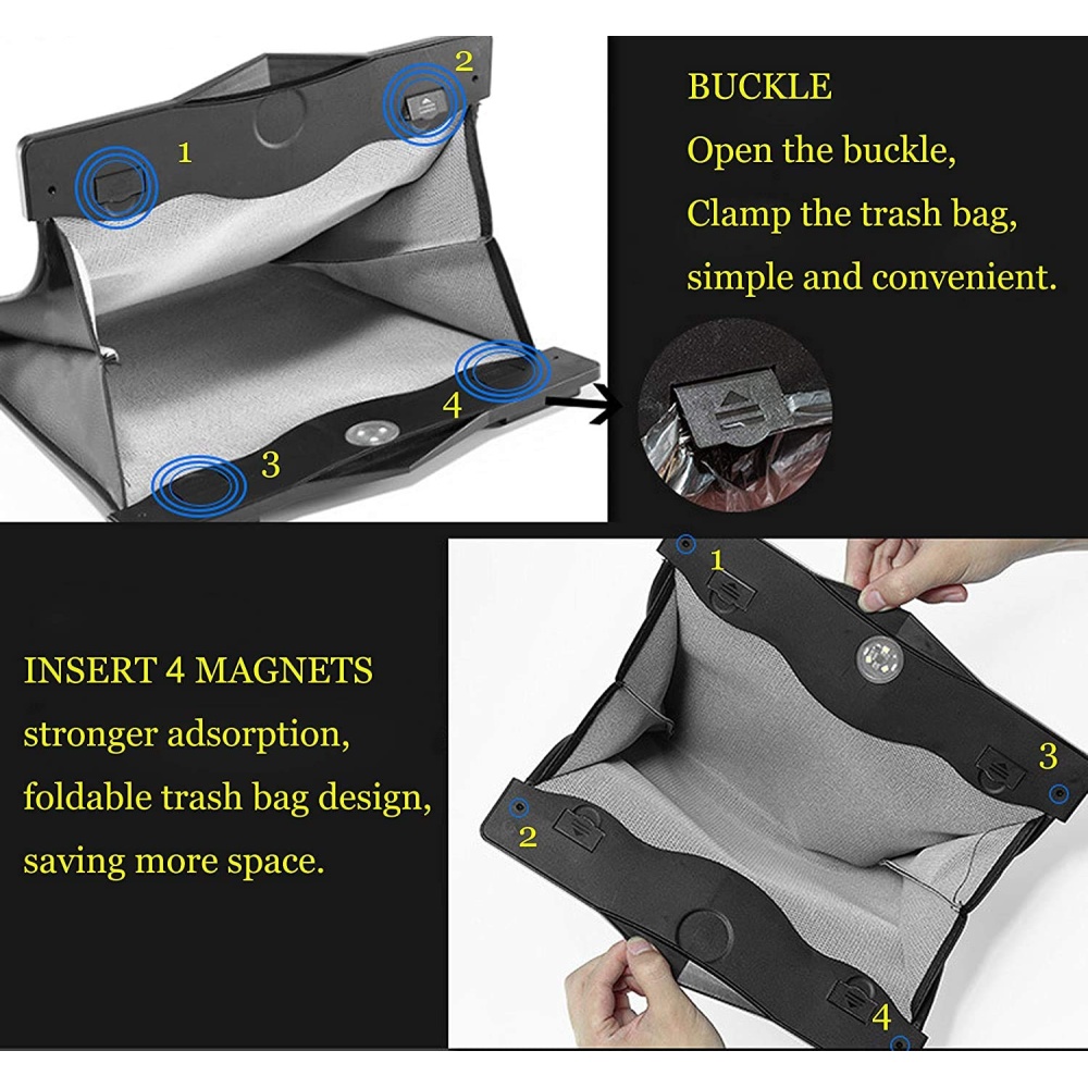 Easily attaches to your car’s headrest, door, or gear shift for accessible trash disposal.