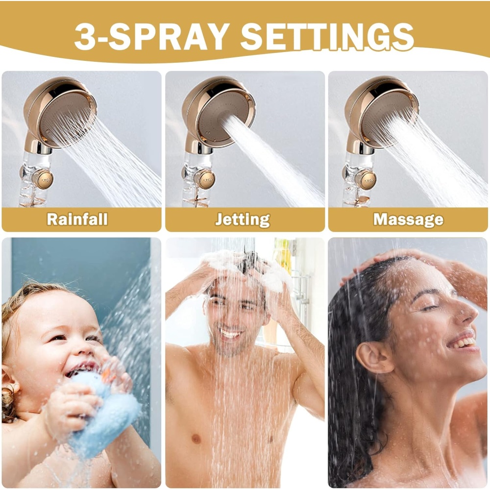 High-Pressure Turbo Shower Head – 3 Adjustable Modes with Filtration System