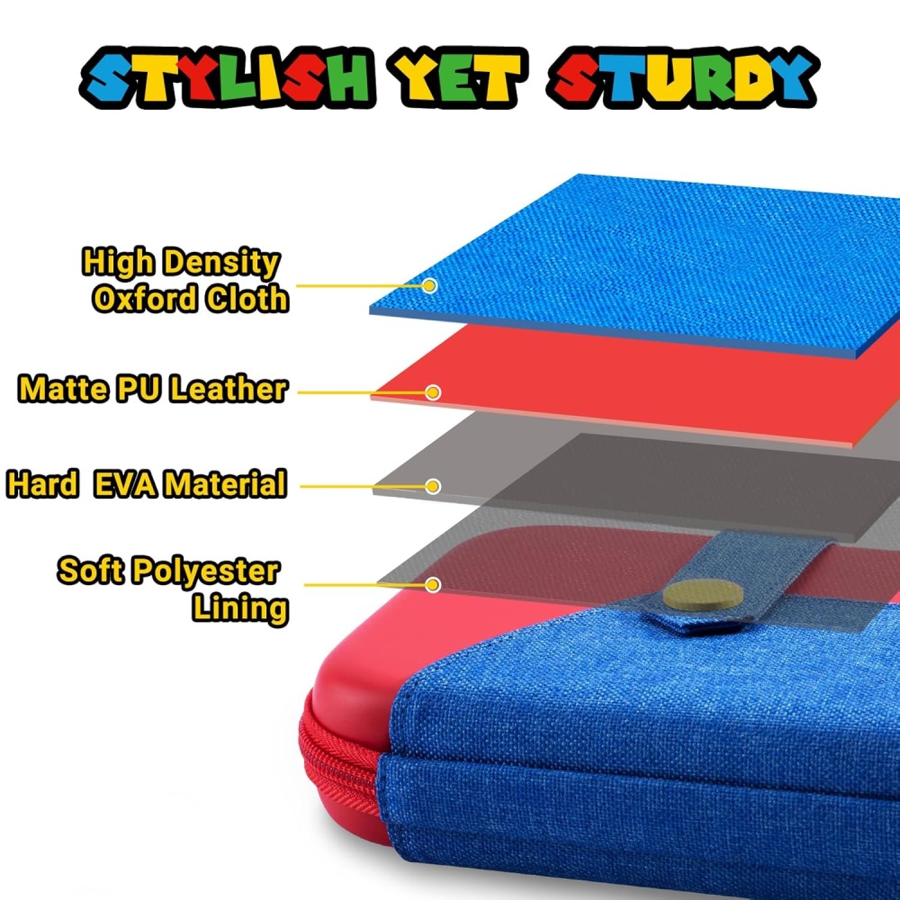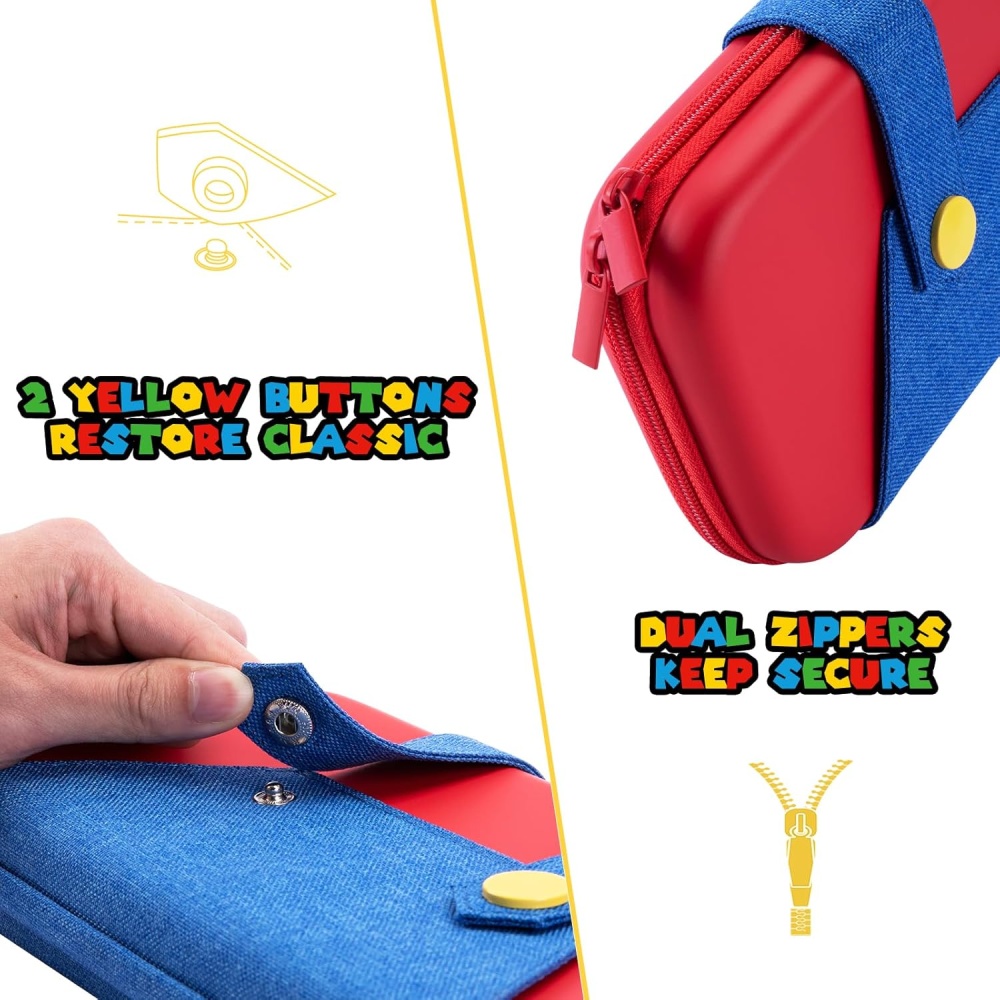 Take your Nintendo Switch anywhere in style with this premium Mario-themed carrying case. Designed with a red-and-blue color scheme and packed with features to protect, organize, and enhance your gaming experience.