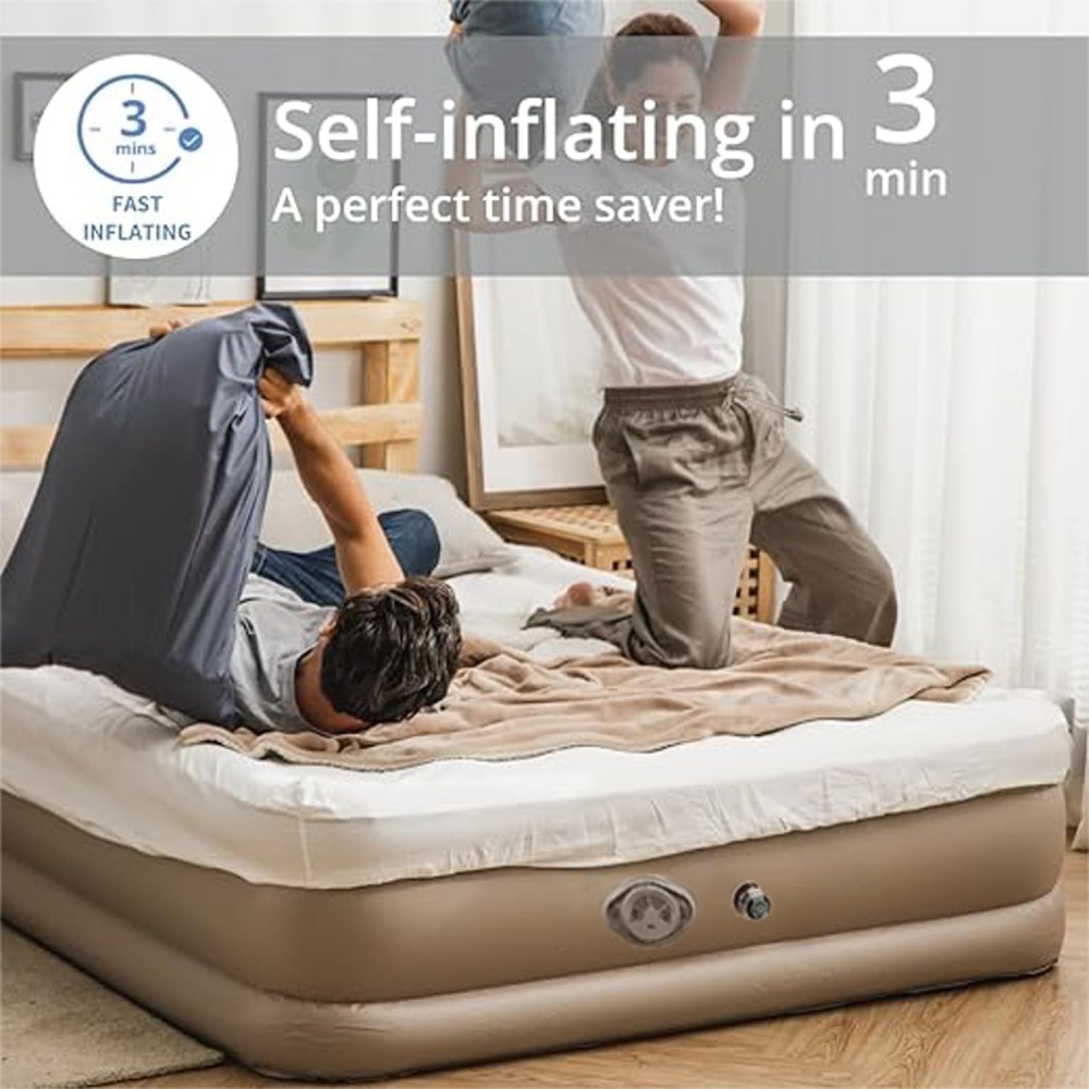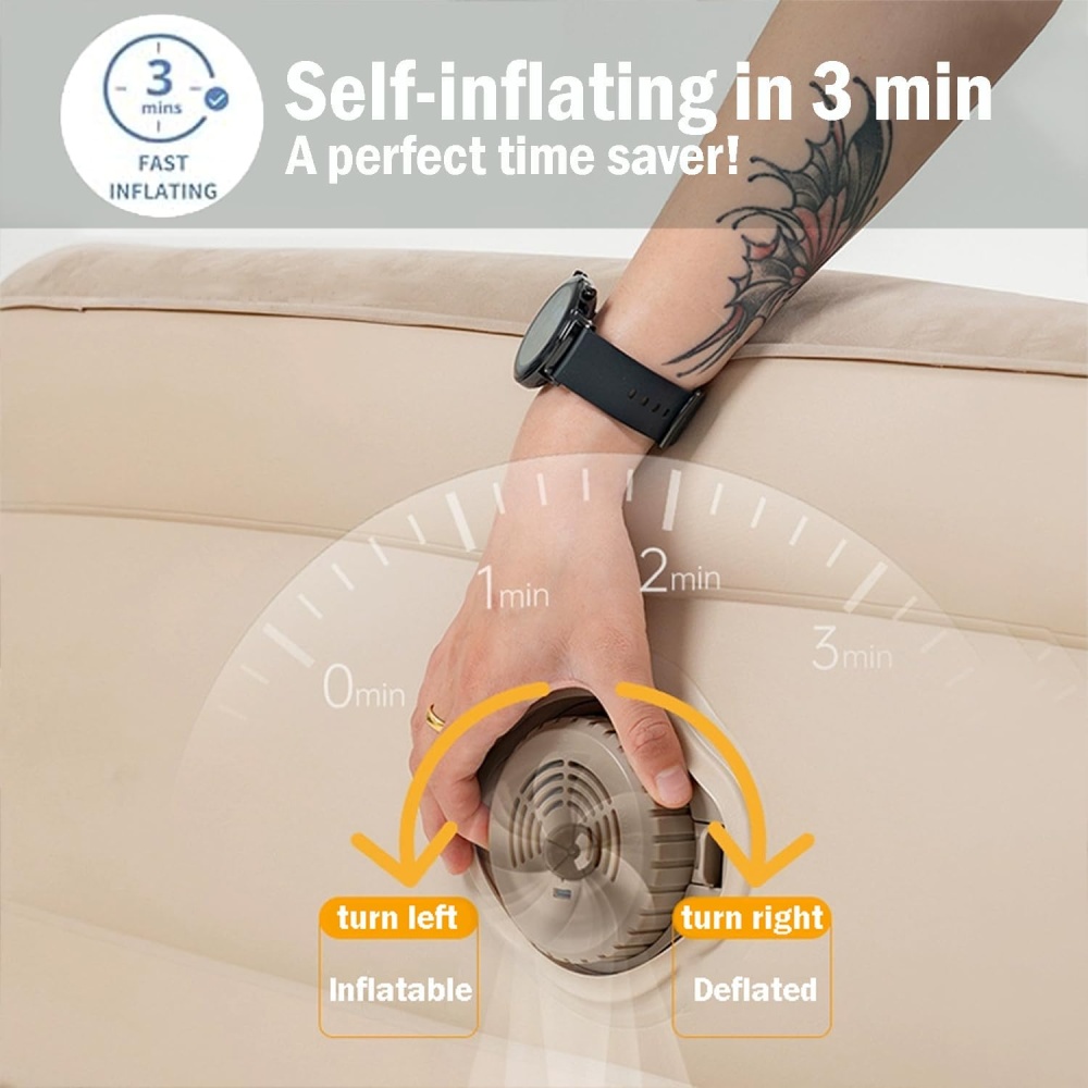 Inflate your bed in seconds with the built-in pump – no effort, no tools required!