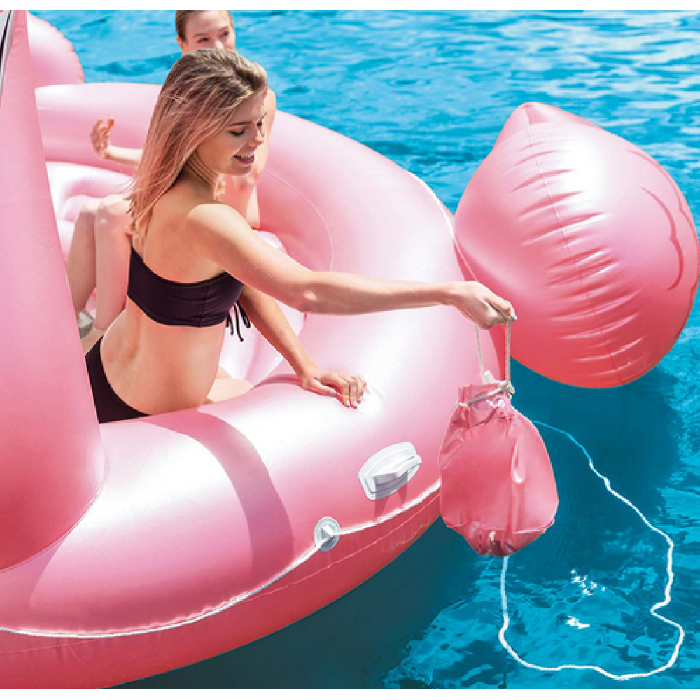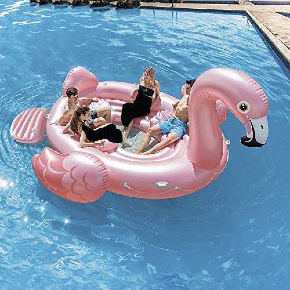 Spacious inflatable pool float designed for fun group lounging and parties.