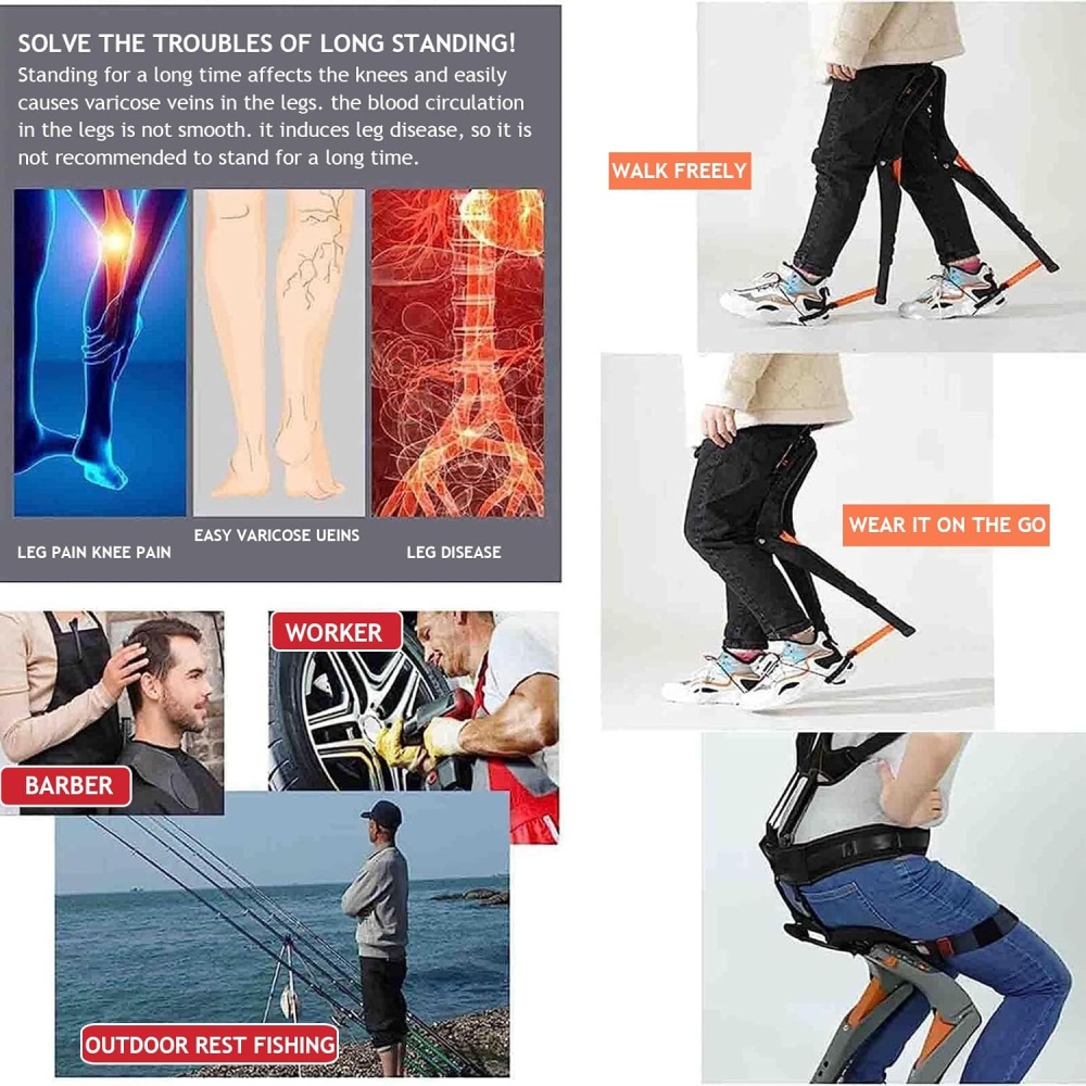 Designed to follow the natural shape of your legs, this chair offers optimal support while walking or sitting. Reduces pressure on knees and joints, improving posture and reducing fatigue during long hours of standing.