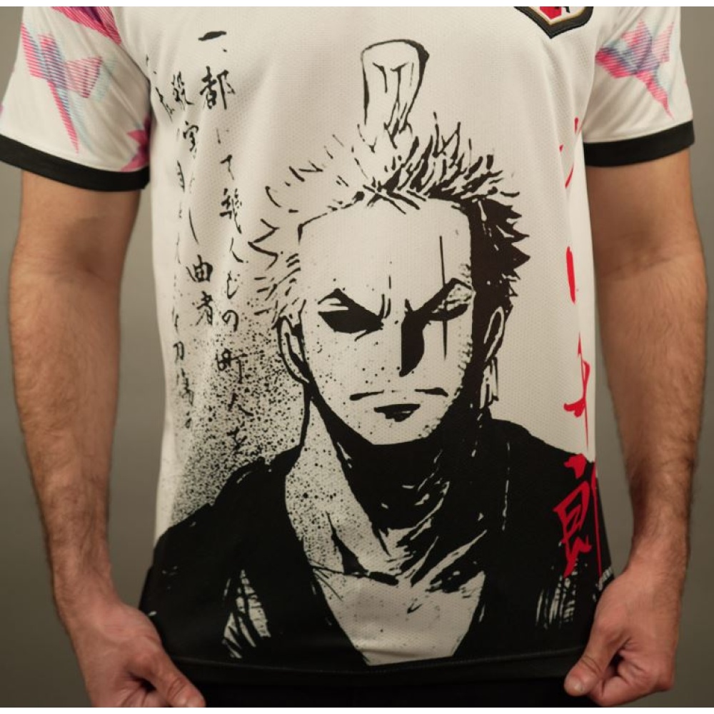 Celebrate Japanese culture and the world of One Piece with this limited-edition jersey featuring Zoro—the legendary swordsman of the Straw Hat Pirates. A unique blend of anime and sport.