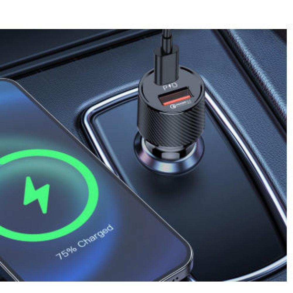 Charge two devices simultaneously via USB-C and USB-A ports.