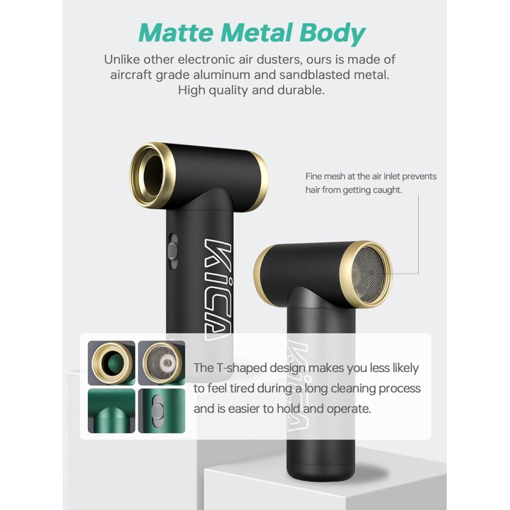 The KiCA Jet Fan 2 features an advanced brushless motor that delivers a powerful blast of air at up to 120,000 RPM. This provides strong and consistent airflow, capable of removing fine dust particles from tight and delicate spaces such as camera sensors, motherboards, and vents.