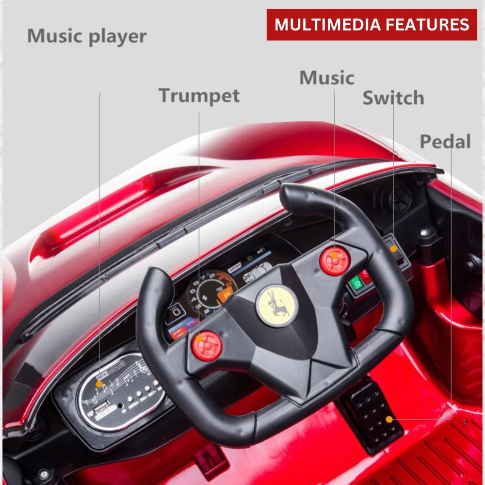 Let your child experience the thrill of driving a luxury supercar with the Ferrari F8 Kids Ride-On Car. Designed with advanced safety features, realistic details, and interactive entertainment, this electric ride-on car delivers excitement, comfort, and peace of mind for parents.