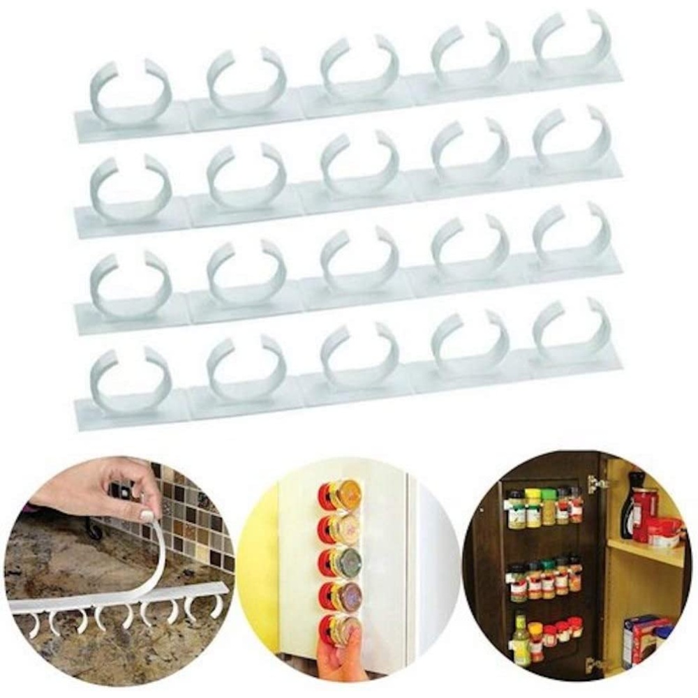 Easily organize spice jars, condiments, and small kitchen items with clip-on holders.