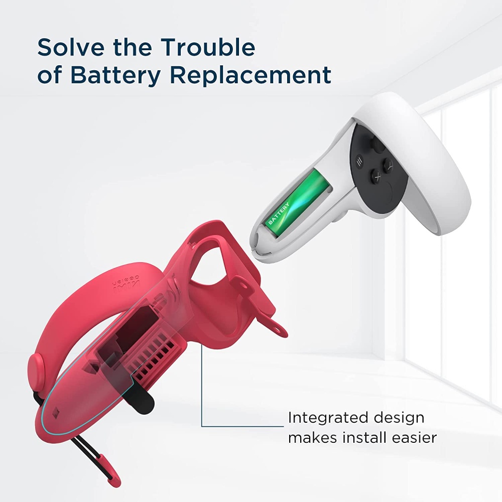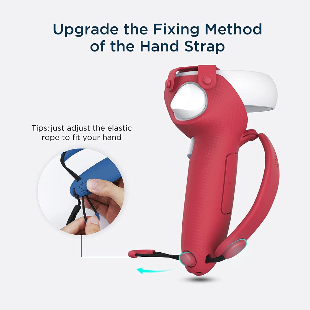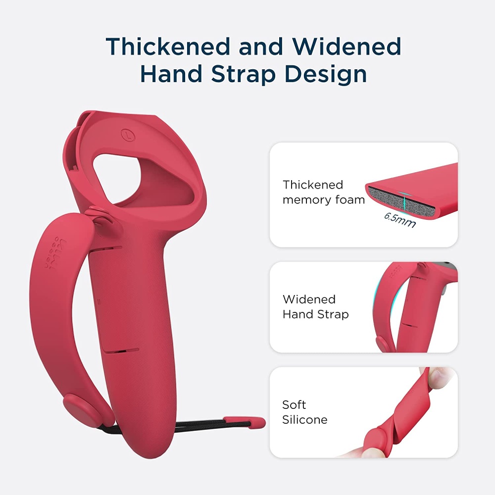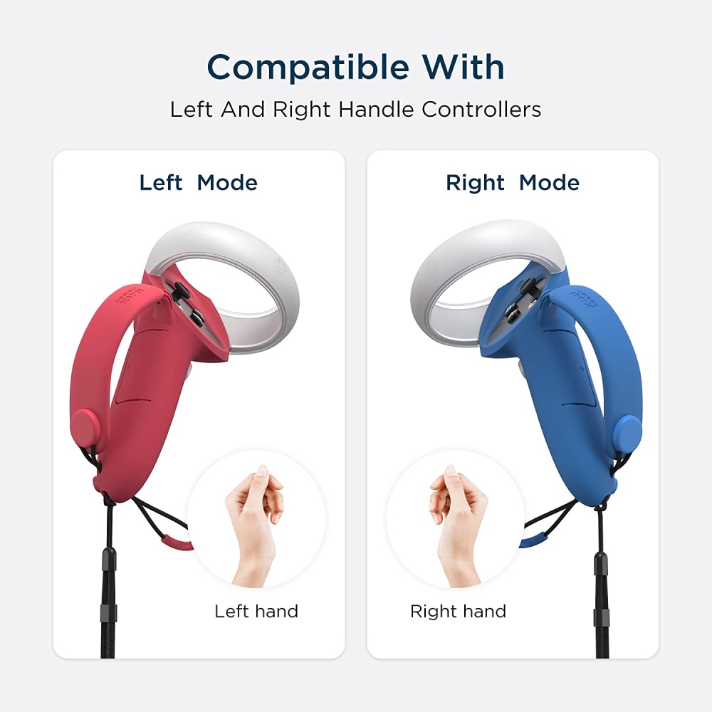 Custom-fit for Oculus Quest 2 controllers, ensuring snug fit without compromising button access or sensor function.