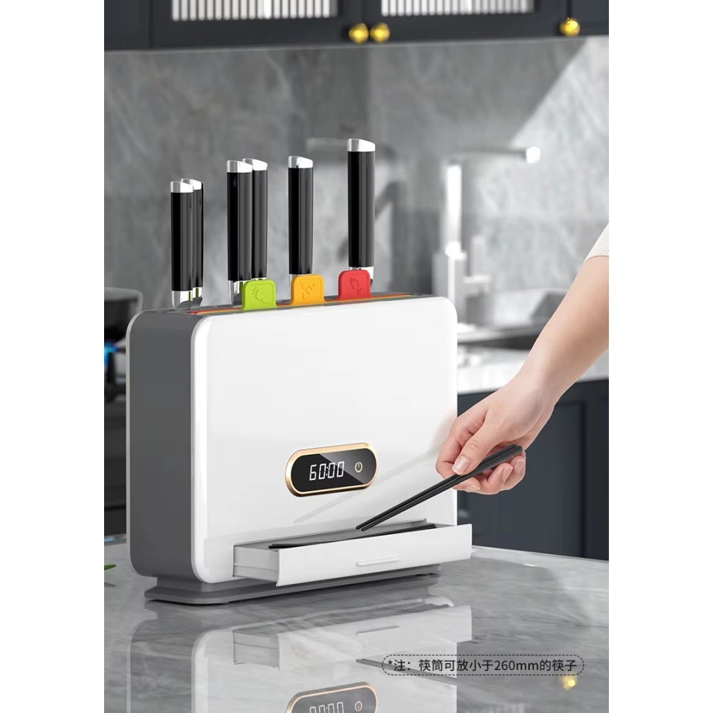 Equipped with an advanced UV sterilizer that helps eliminate bacteria from knives, ensuring safer food preparation every time.