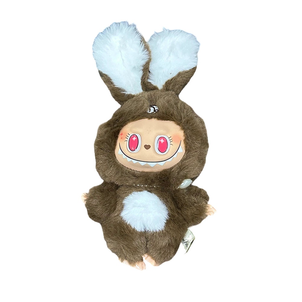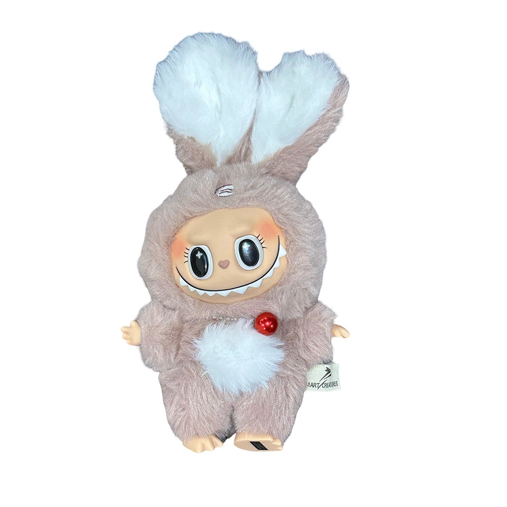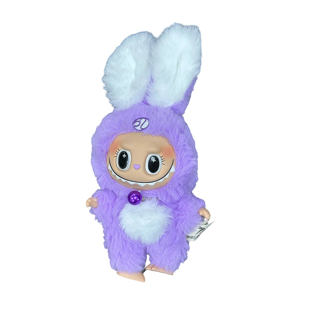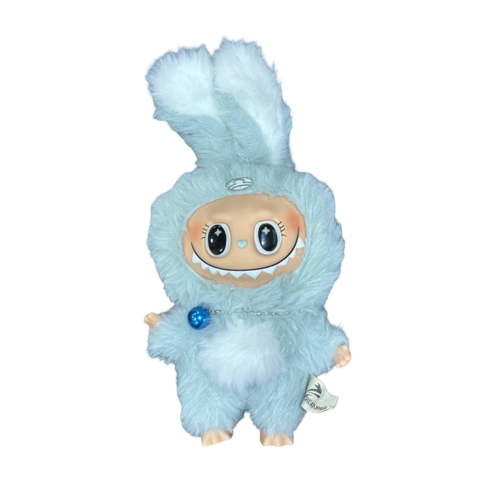 Labubu appears in a cute rabbit outfit with detailed stitching and signature character charm.
