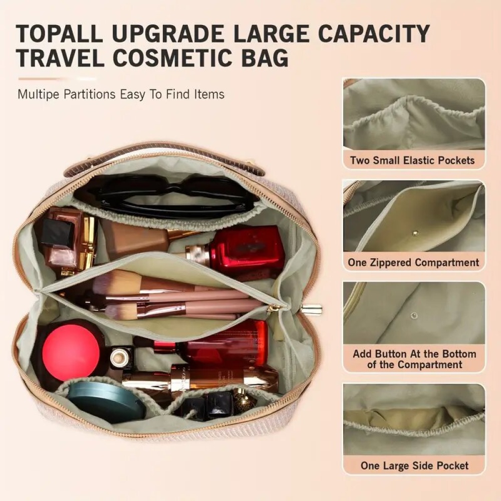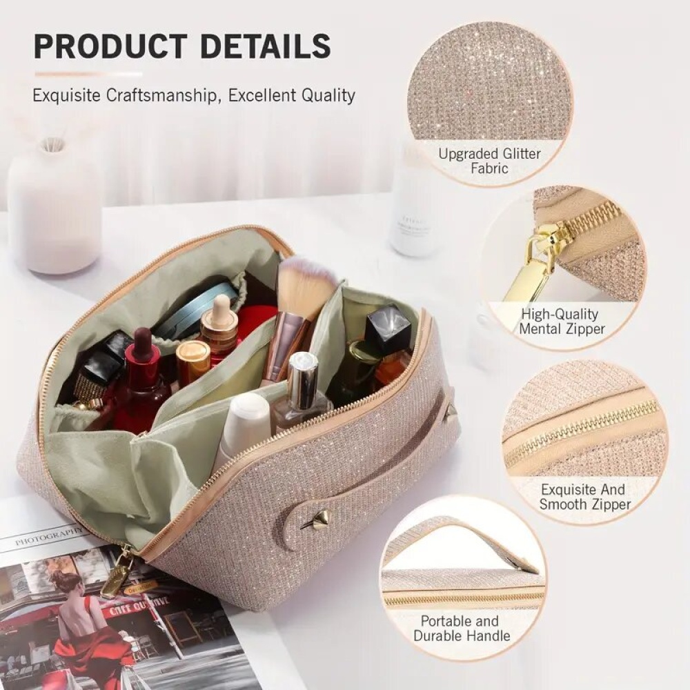 Travel in style and keep all your cosmetics perfectly organized with this Large Capacity Travel Makeup Bag for Women in elegant silver. Designed with multiple compartments and durable materials, it’s ideal for storing makeup, brushes, skincare, and other essentials while on the go. Lightweight yet spacious, this bag combines practicality with chic design.