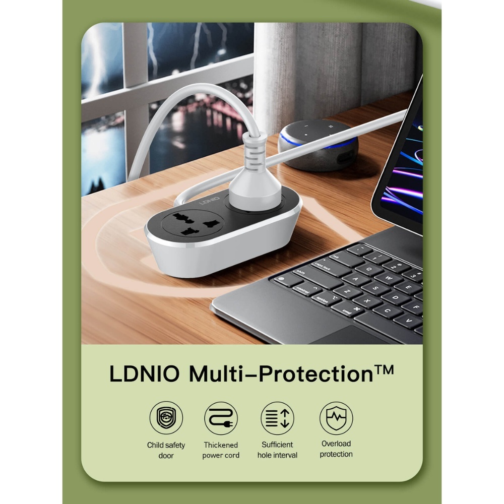 Made with high-grade, fire-resistant PVC material, the Ldnio extension cord ensures long-lasting safety and durability. It's built to withstand wear and tear while providing consistent performance.