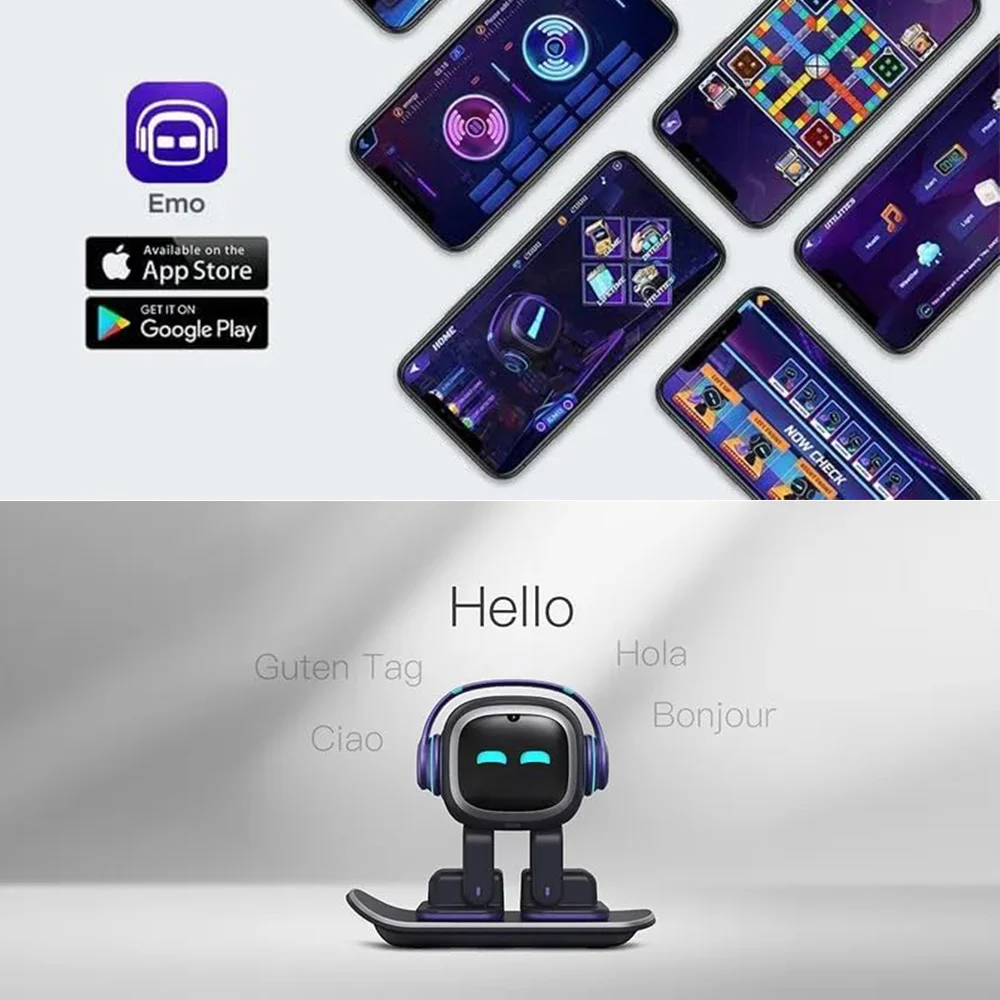 Play your favorite music and watch EMO dance! Connect to the EMO app to unlock interactive games and fun activities. Volume can be easily adjusted through the app.