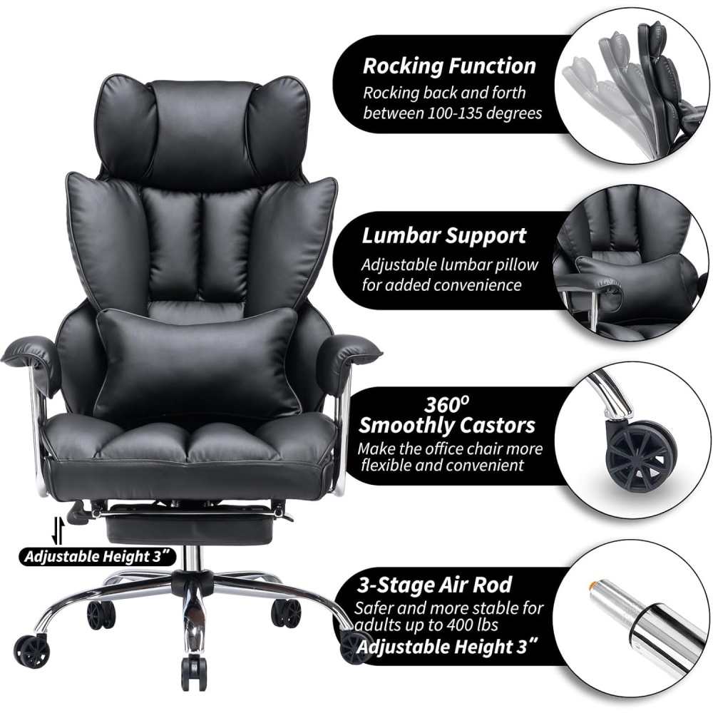 Switch effortlessly between work mode (100°), relax mode (110°), or rest mode (135° with footrest extended). You can even sit cross-legged in comfort.