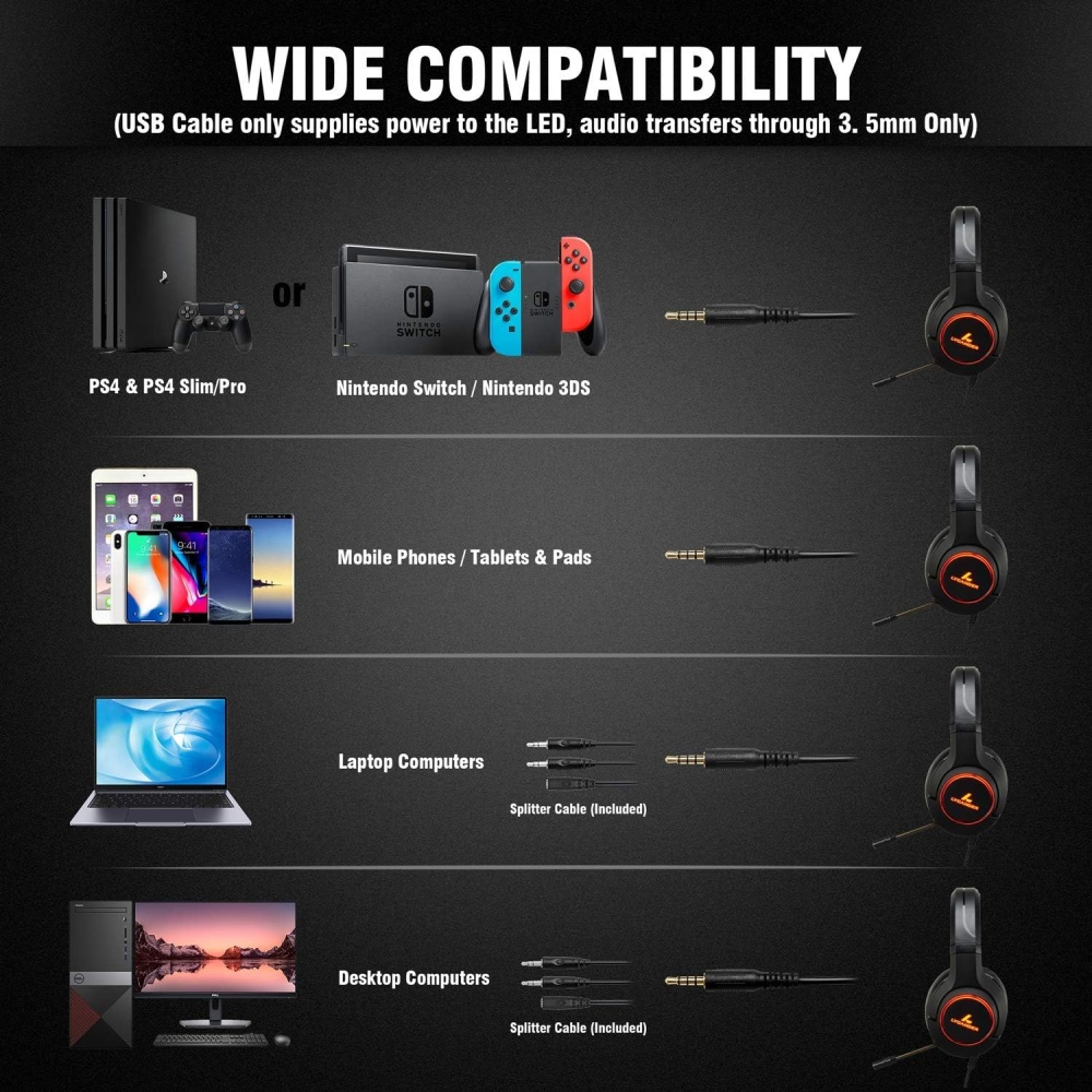 Works seamlessly with PC, PS4, Xbox One, Nintendo Switch, laptops, and mobile devices via standard 3.5mm audio jack.