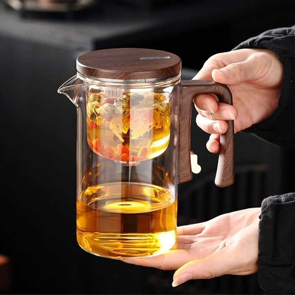 The beautifully crafted wooden handle adds a refined touch while providing a comfortable, heat-resistant grip, protecting your hands from burns when pouring hot tea. Its timeless design complements any kitchen or tea setup.