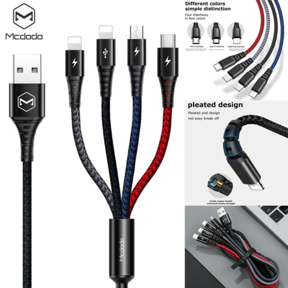 The Mcdodo CA-623 is equipped with 2 Lightning connectors, 1 MicroUSB, and 1 Type-C connector, enabling you to charge multiple devices at once, no matter the type of port your device uses. A perfect solution for households, offices, or anyone who uses a variety of devices.
