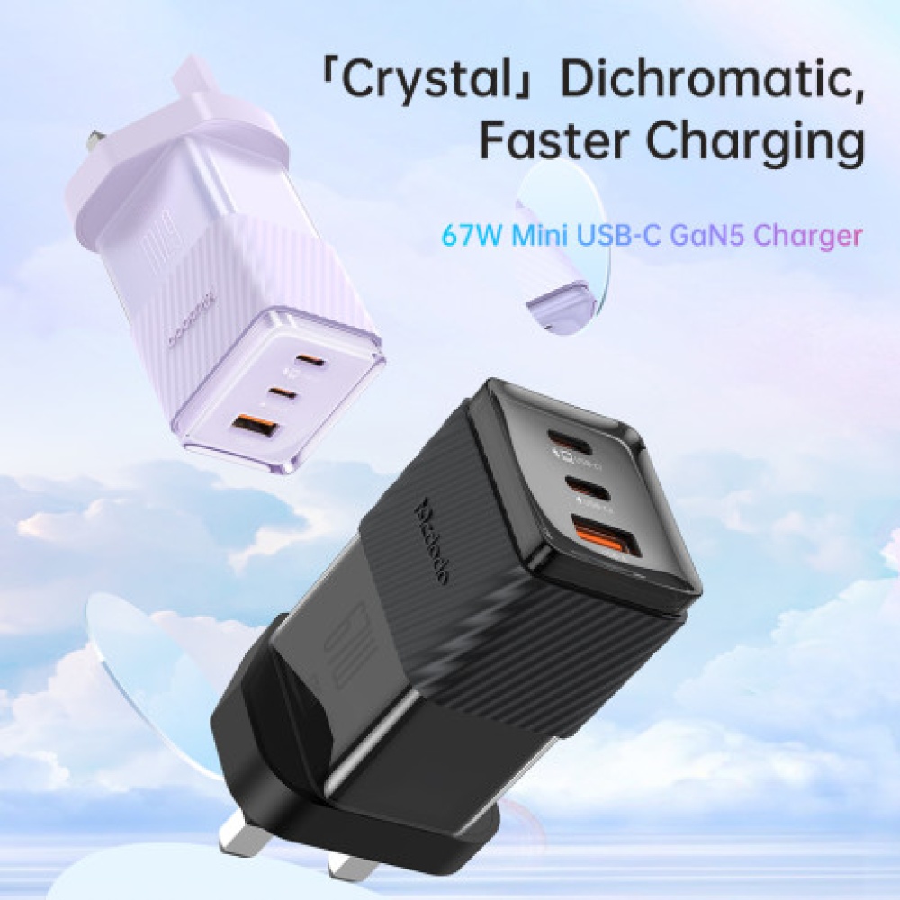 Charge your devices quickly and efficiently with the Mcdodo 67W Dichromatic GaN 5 Mini Fast Charger CH-149. Featuring advanced GaN technology, this compact charger delivers powerful fast charging with dual-color design for a sleek, modern look. Ideal for smartphones, tablets, laptops, and more, it’s your perfect travel companion.
