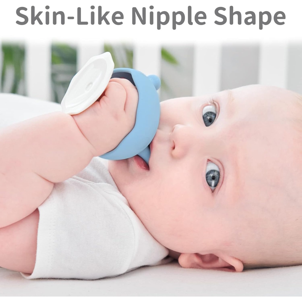Features a contour inspired by breastfeeding with a dual pacifier shape