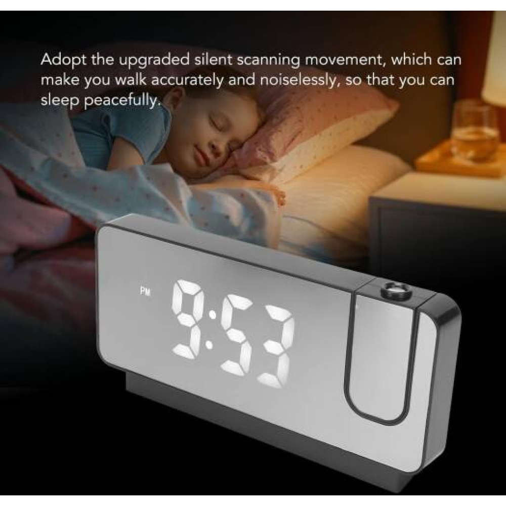 Product Description: Mirror Clock and Alarm with Laser Projection of Time on the Wall