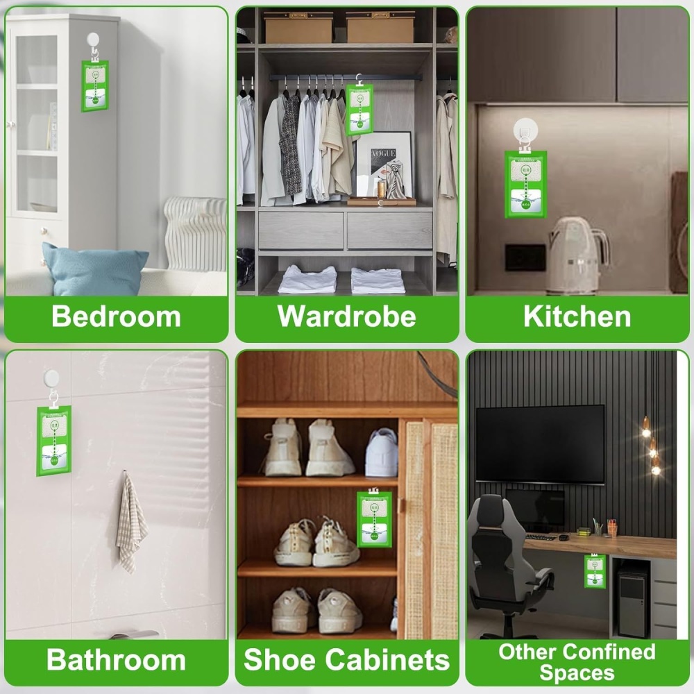 Simply tear open the outer wrap, use the built-in hanging hook, and hang it anywhere you need moisture control.
