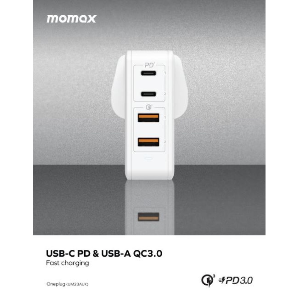 Features 2 USB-C and 2 USB-A ports to charge up to 4 devices at once.