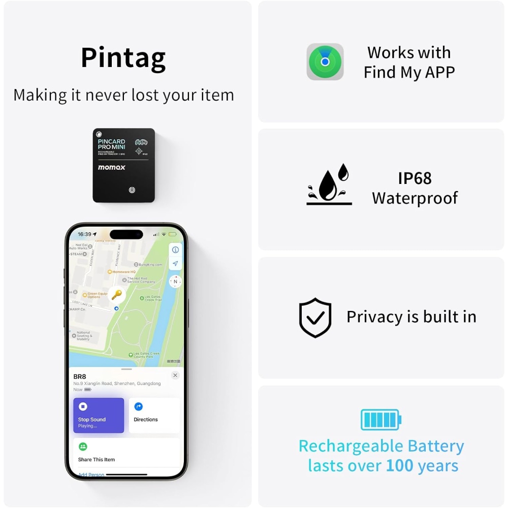 MOMAX PinCard Mini Rechargeable Find My Tracker BR8D