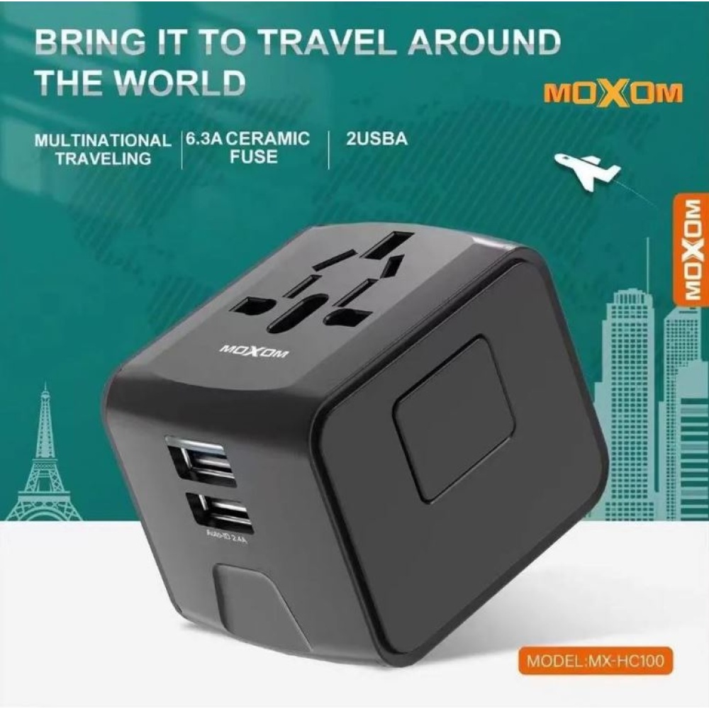 Whether you're traveling for business or leisure, the Moxom MX-HC100 Travel Adaptor is the perfect solution to keep your devices charged and ready for action. Compact, powerful, and globally compatible, it’s your go-to travel accessory!