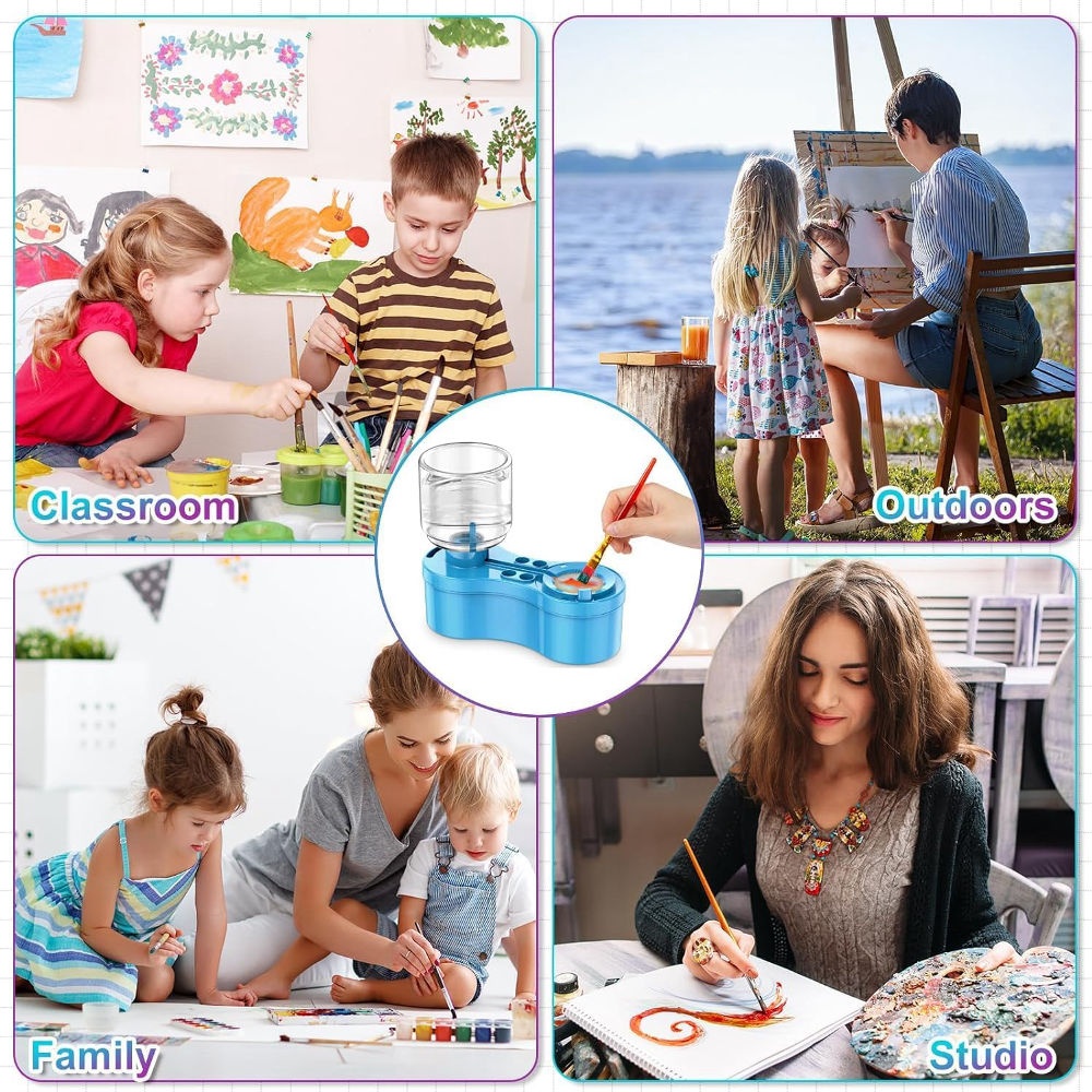 Keep your creativity flowing with this innovative 5-in-1 paint brush cleaner designed for painters, students, teachers, and artists. It combines washing, holding, draining, and water circulation into one compact tool — making painting easier and more enjoyable.