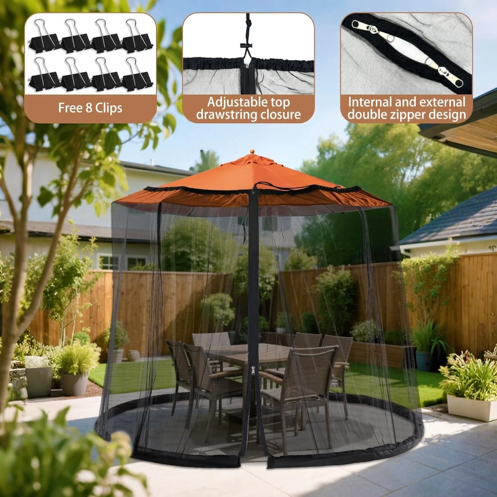 Suitable for most outdoor sunshades and patio umbrellas, this mosquito net is ideal for patios, porches, gardens, decks, and other outdoor spaces. Enjoy fresh air and relaxing moments with friends and family.