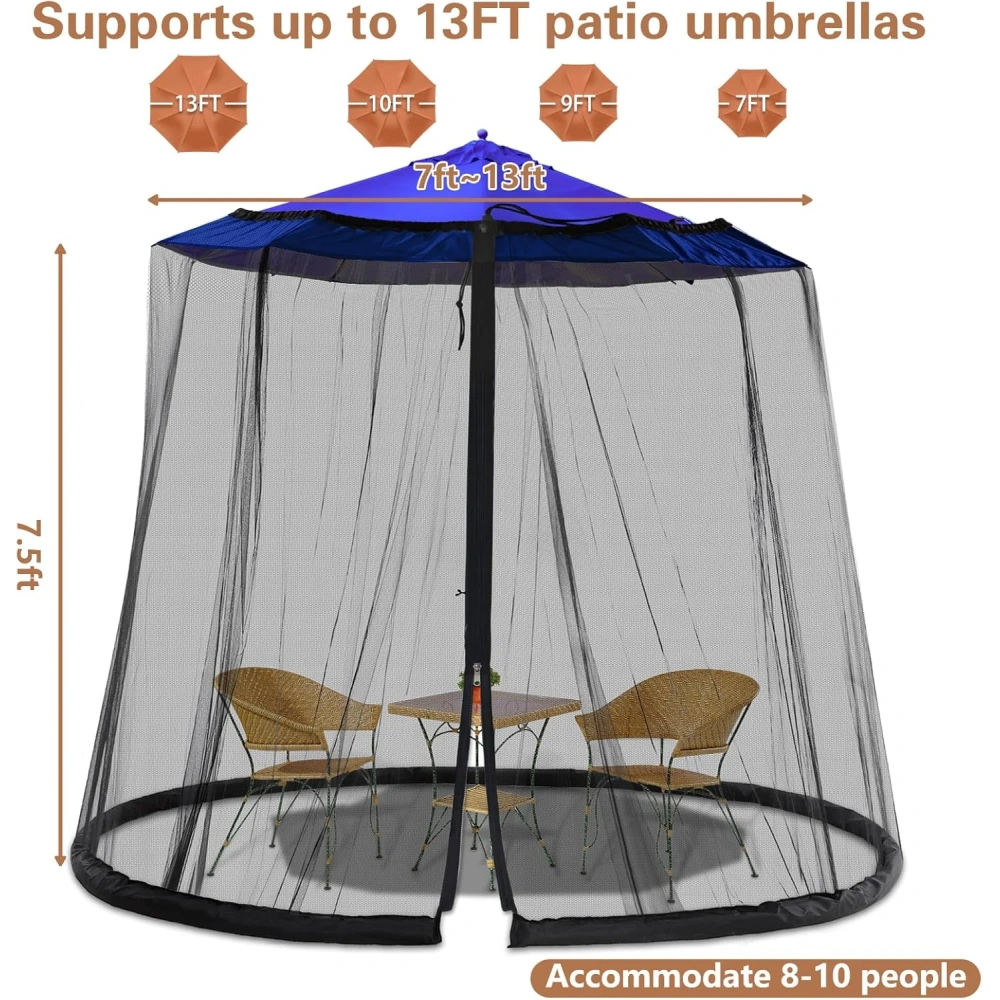 Designed to fit outdoor umbrellas ranging from 7.5 to 13 feet, this net can accommodate up to 9 people, making it perfect for family use and social gatherings.