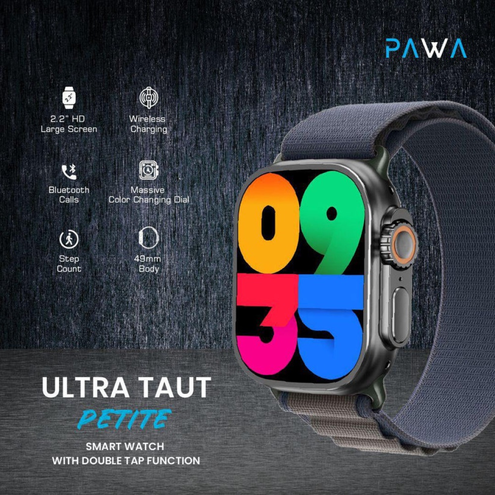 Pawa Ultra 49mm Taut Petite Smart Watch With Double‑Tap Function – Black/Blue