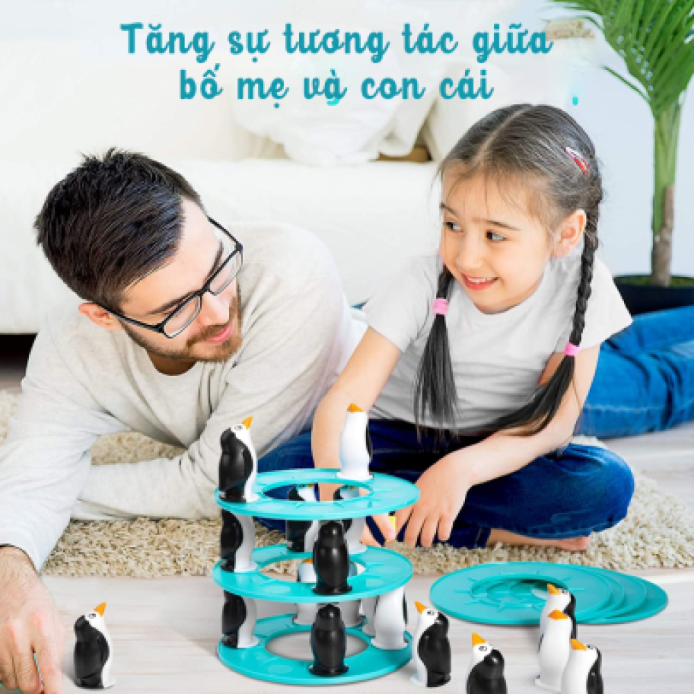 Stack the icy platforms and carefully place the penguins—don’t let the tower topple!