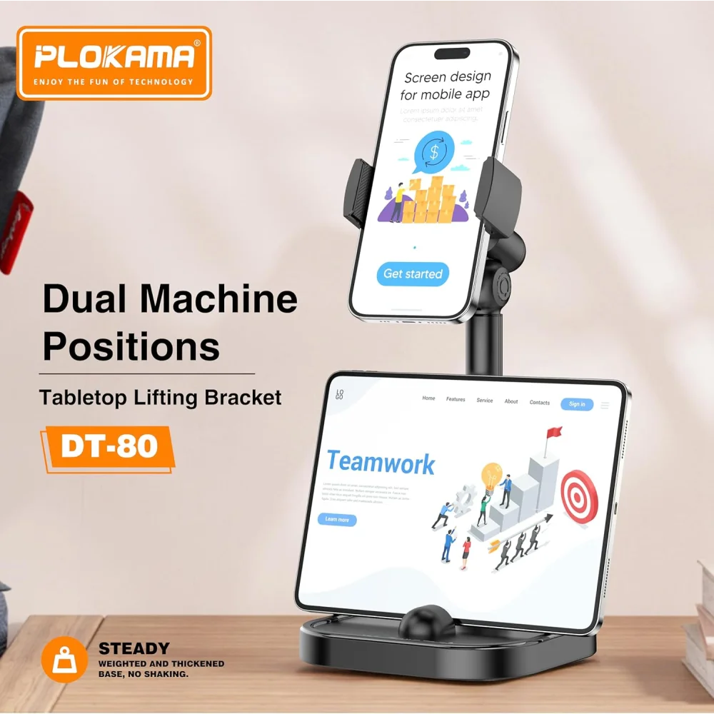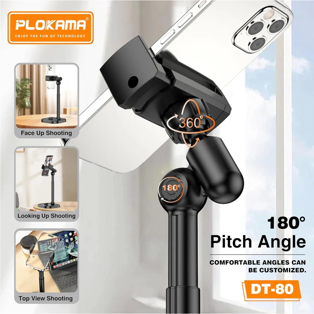 Experience hands-free convenience and rock-solid stability with the Plokama DT80 Phone Stand Holder. Built with premium materials and designed for flexibility, this stand is perfect for desk use, content creation, video calls, and overhead shooting.