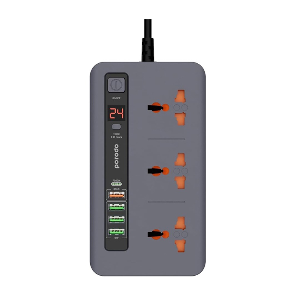 Porodo 3 AC 4 USB-A & USB-C PD 20W Hub 2M UK Grey