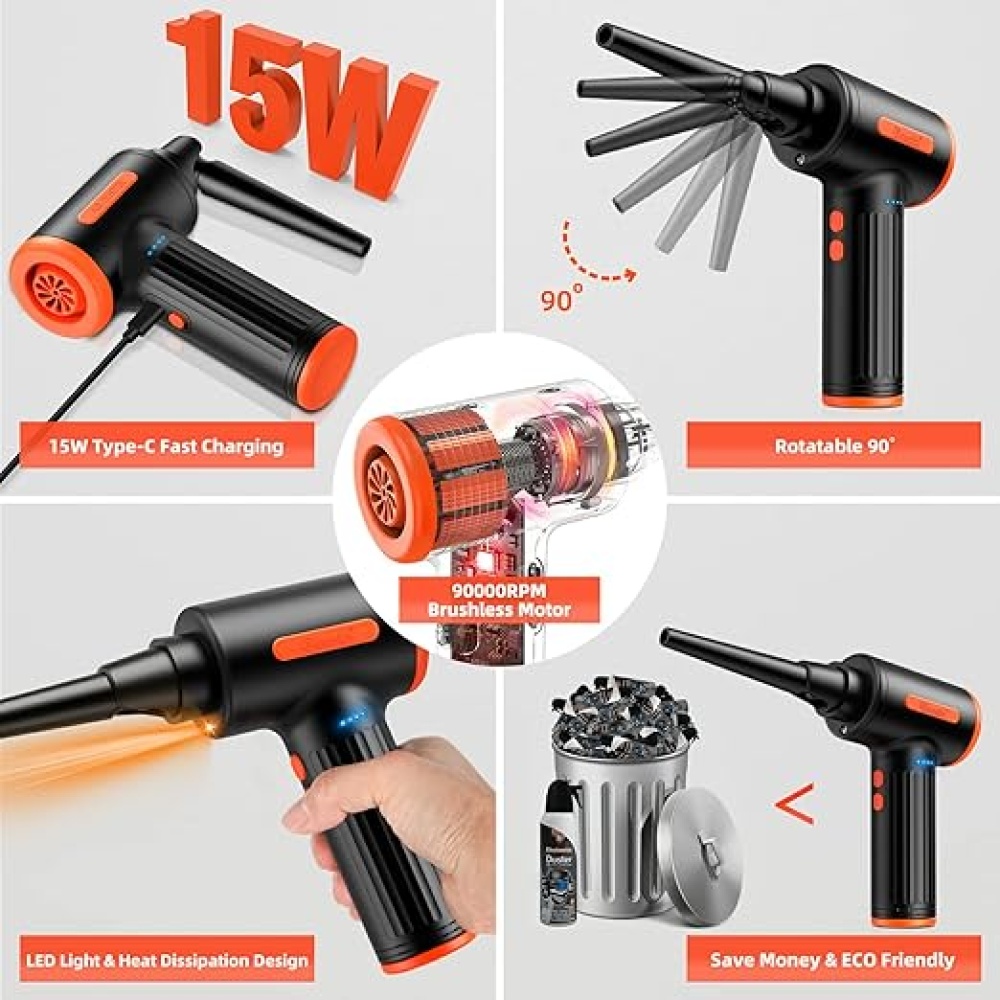Efficient Dust Removal: Effectively remove dust and debris from your devices, keyboards, furniture, and other hard-to-reach areas, ensuring a clean and fresh environment.