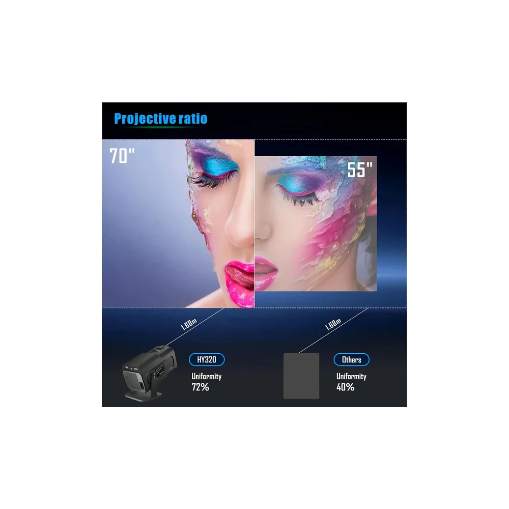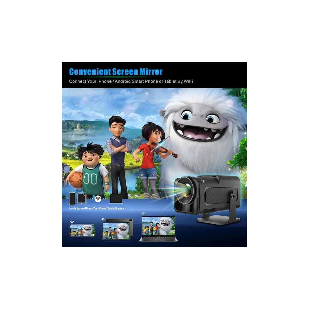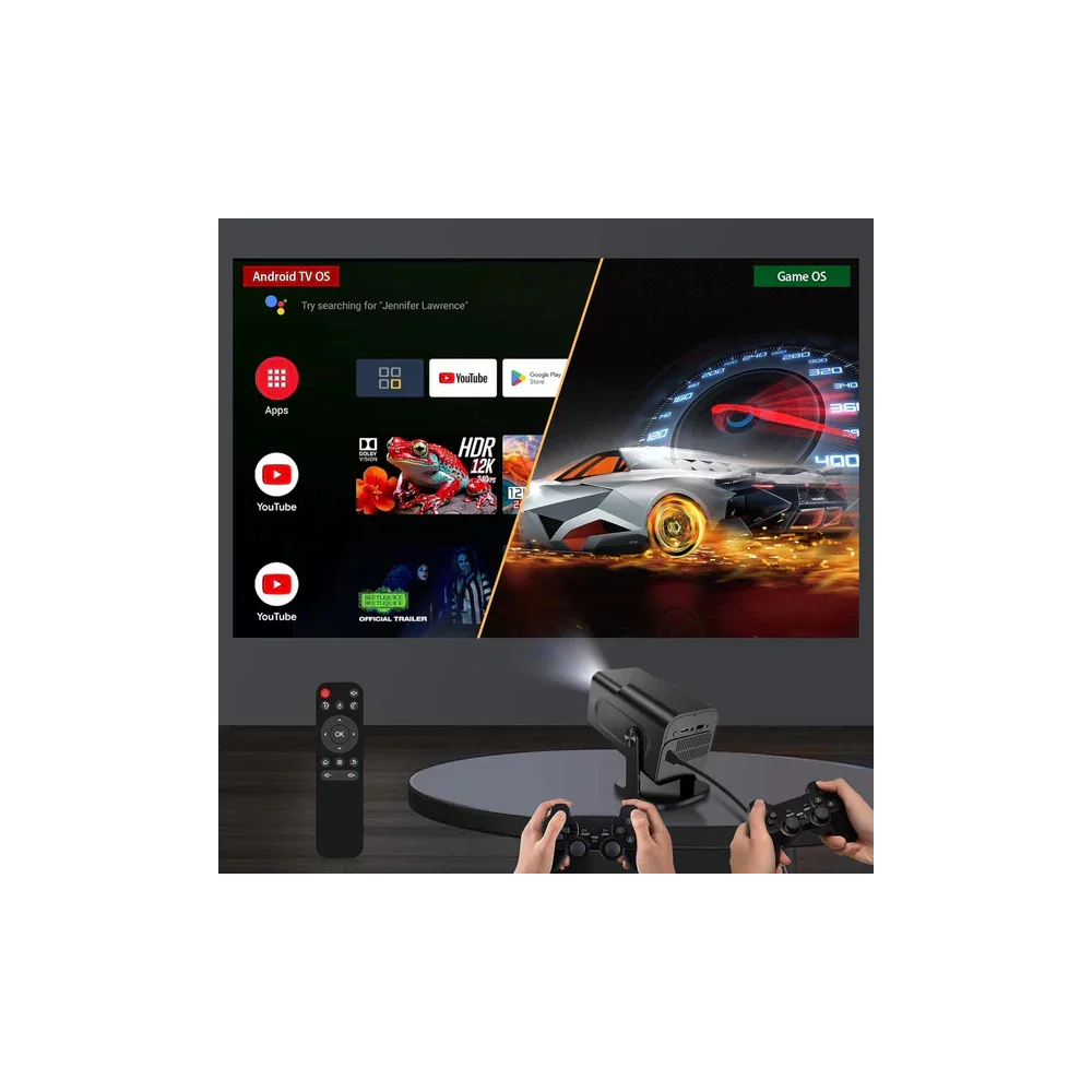Upgrade your entertainment with this portable smart projector, designed for home cinema, gaming, and outdoor use. Featuring Full HD 1080P native resolution, 4K content support, and a built-in gaming console, it delivers powerful performance in a compact and easy-to-carry design.