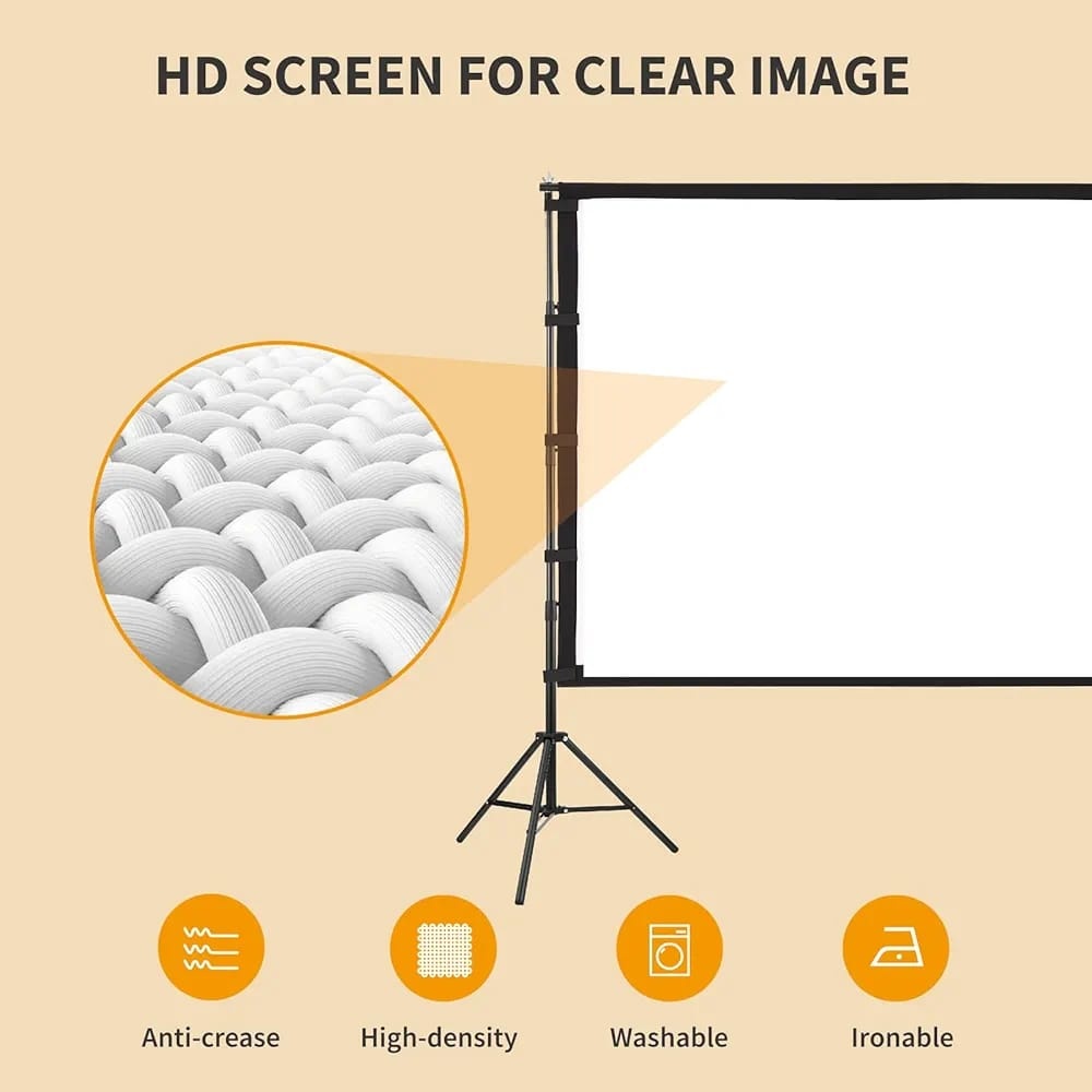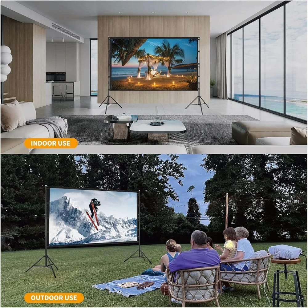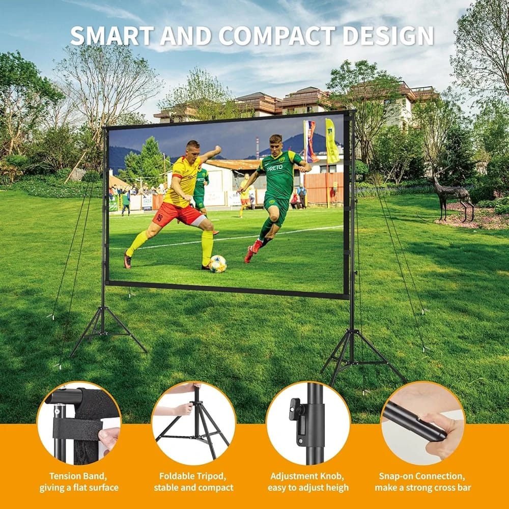 The movie screen for outdoor use features 16:9 high definition and a 160-degree wide viewing angle. The upgraded high-textile oxford cloth can get better photosynthesis and clearer projection. It’s easy to install and portable. You can enjoy movable cinema at home, outdoor, Camping, Ceremony, etc