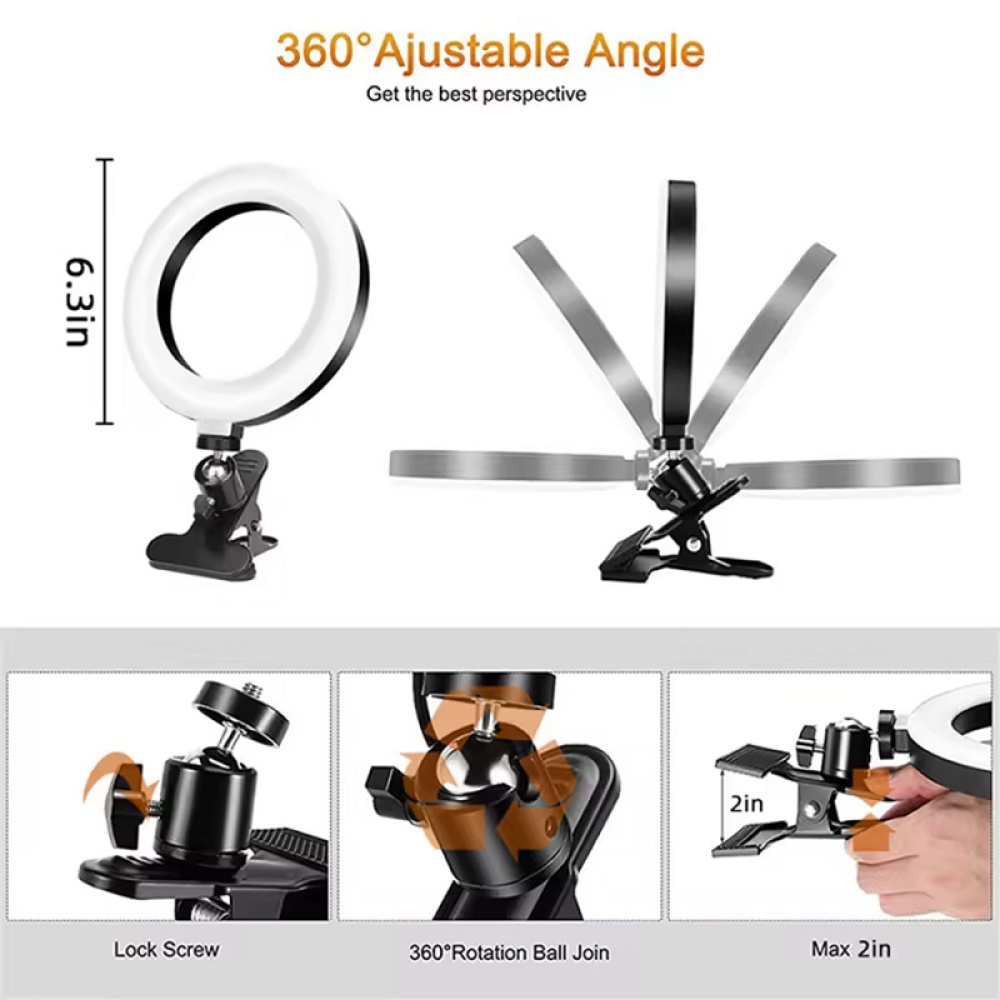 Just simply clip this selfie ring light on your bed, desk, office, conference table, and anywhere you desire. Stably clip on a furniture’s thickness below 7cm.
