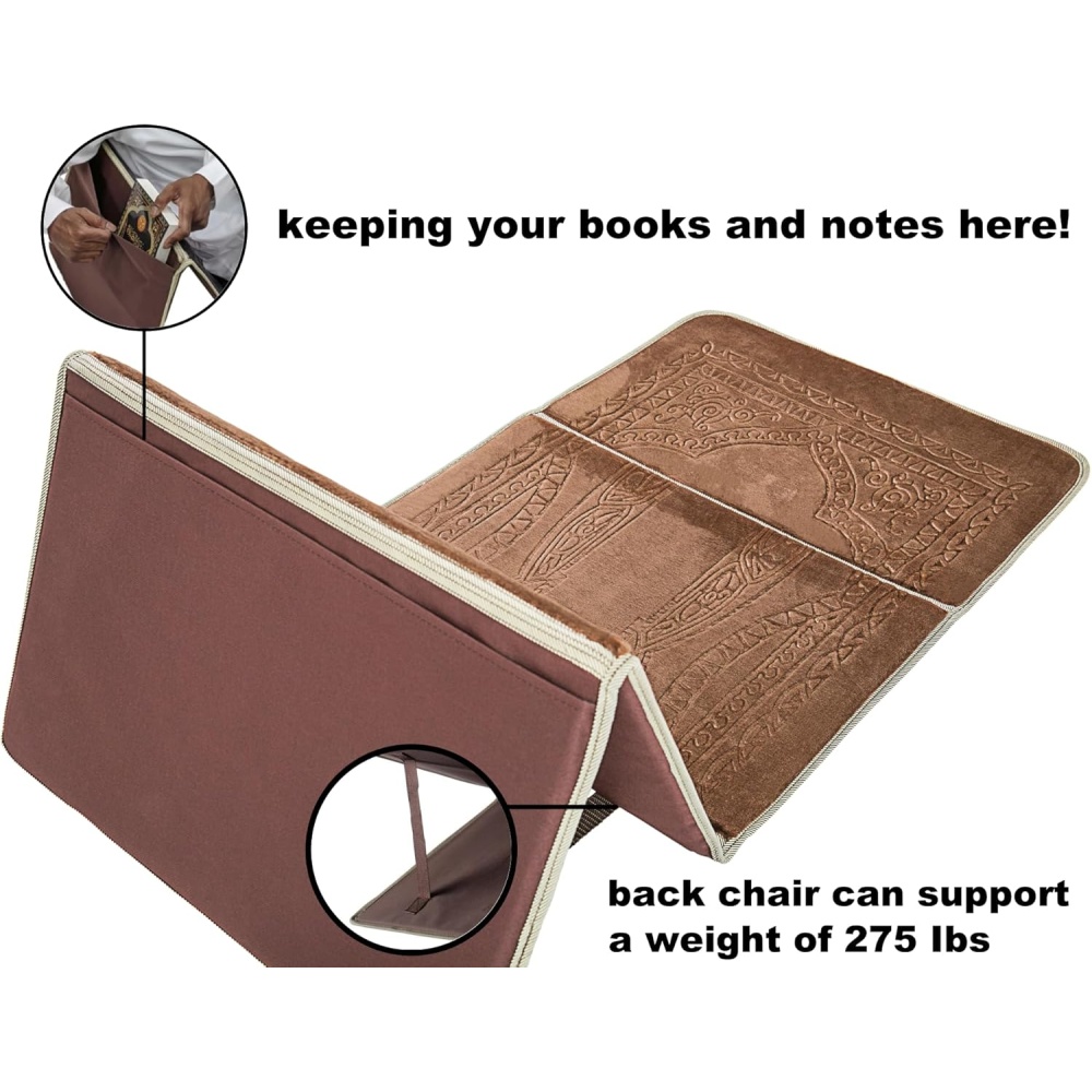 Prayer Rug Mat with Back Sitter Support - Brown