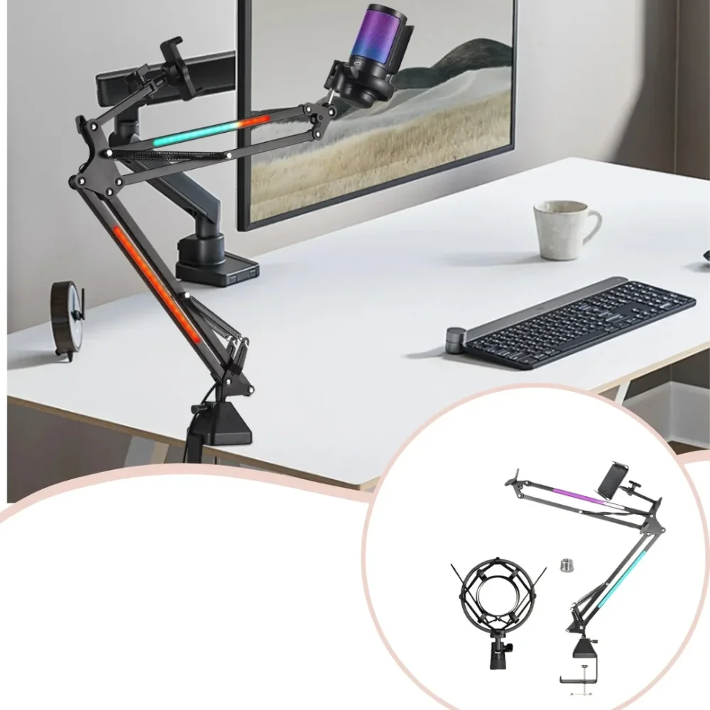 Equipped with an adjustable phone holder, this microphone stand supports both audio recording and video streaming, making it ideal for live streaming, podcasts, gaming, and online content creation.