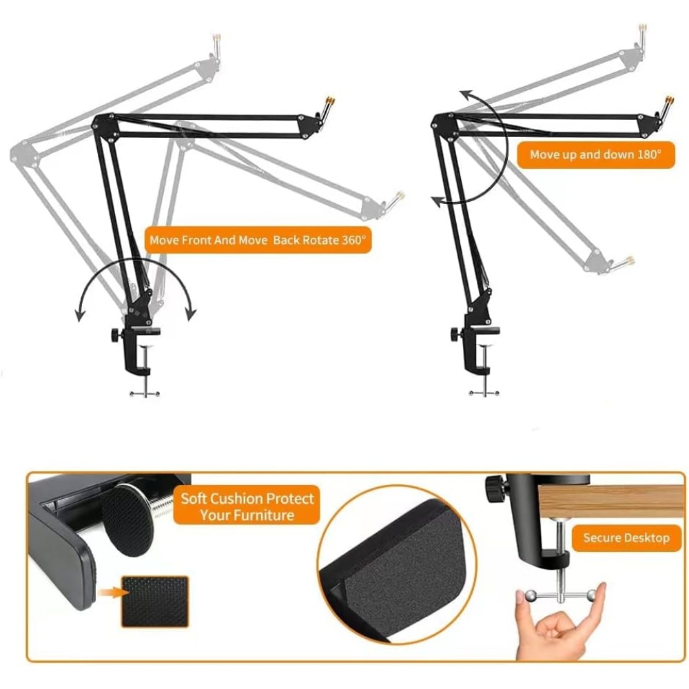 Heavy-duty desk clamp ensures a firm grip without damaging your surface; solid metal construction offers long-lasting durability.