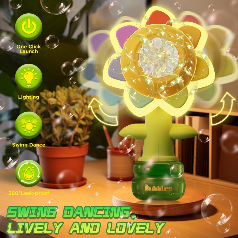 The Rainbow Flower Automatic Bubble Machine combines creativity, fun, and safety in one playful design. With its bright lights, rechargeable power, and high bubble output, it’s the perfect gift to make every child’s day brighter — and every party unforgettable.