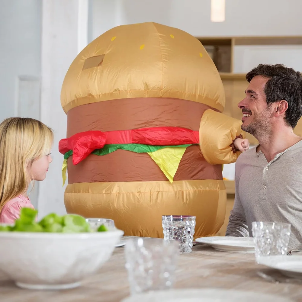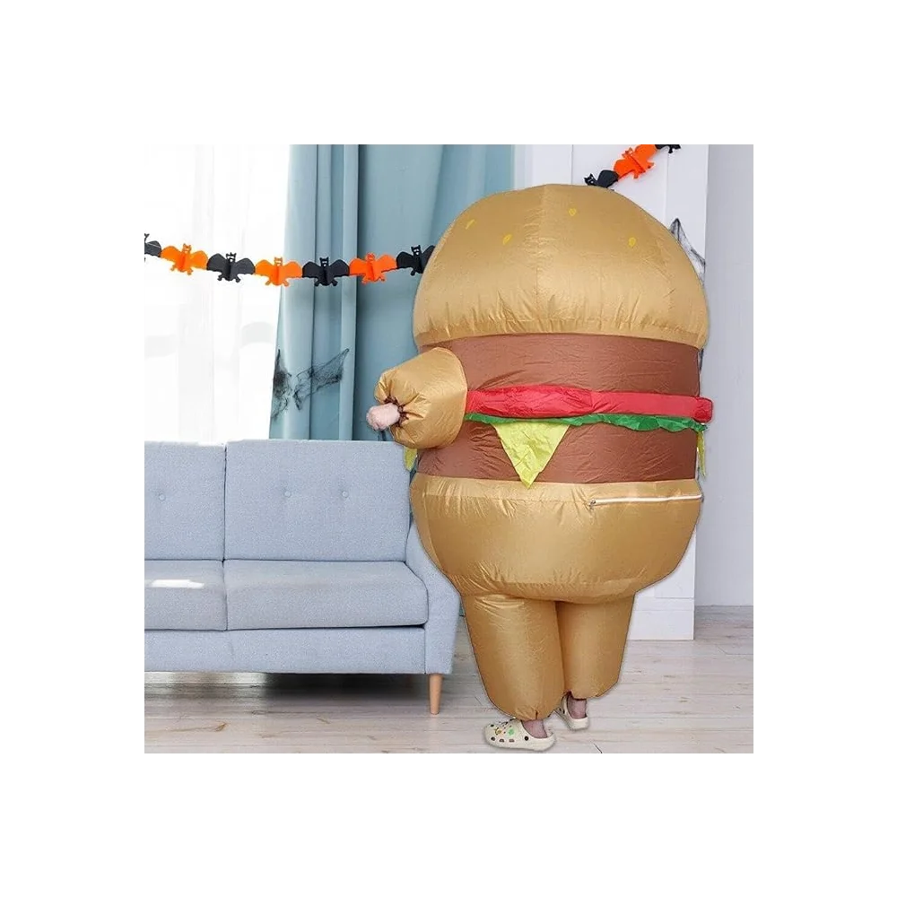 Turn heads and spread laughter with the REX Inflatable Hamburger Costume — easy to wear, hilarious to look at, and impossible to ignore! 🍔😄
