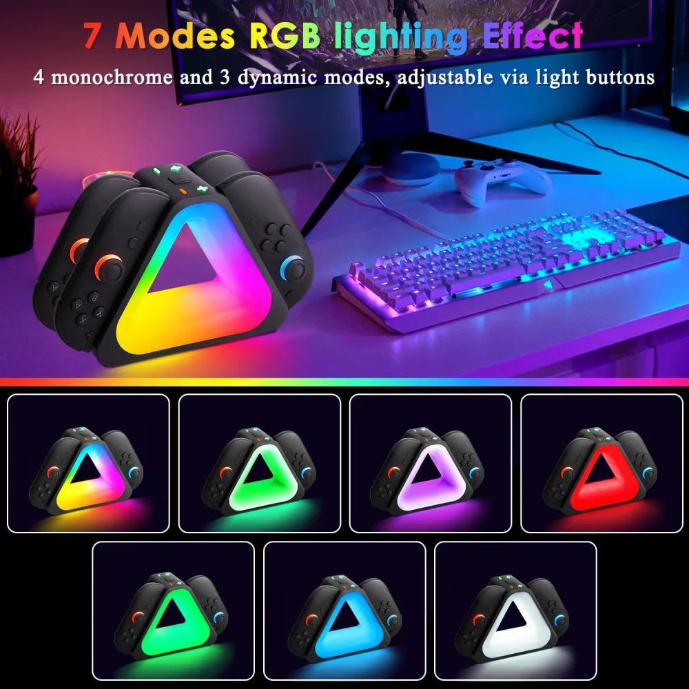 Equipped with multiple RGB lighting modes, this charging dock adds a vibrant and immersive gaming atmosphere to your room, perfectly matching modern gaming setups.