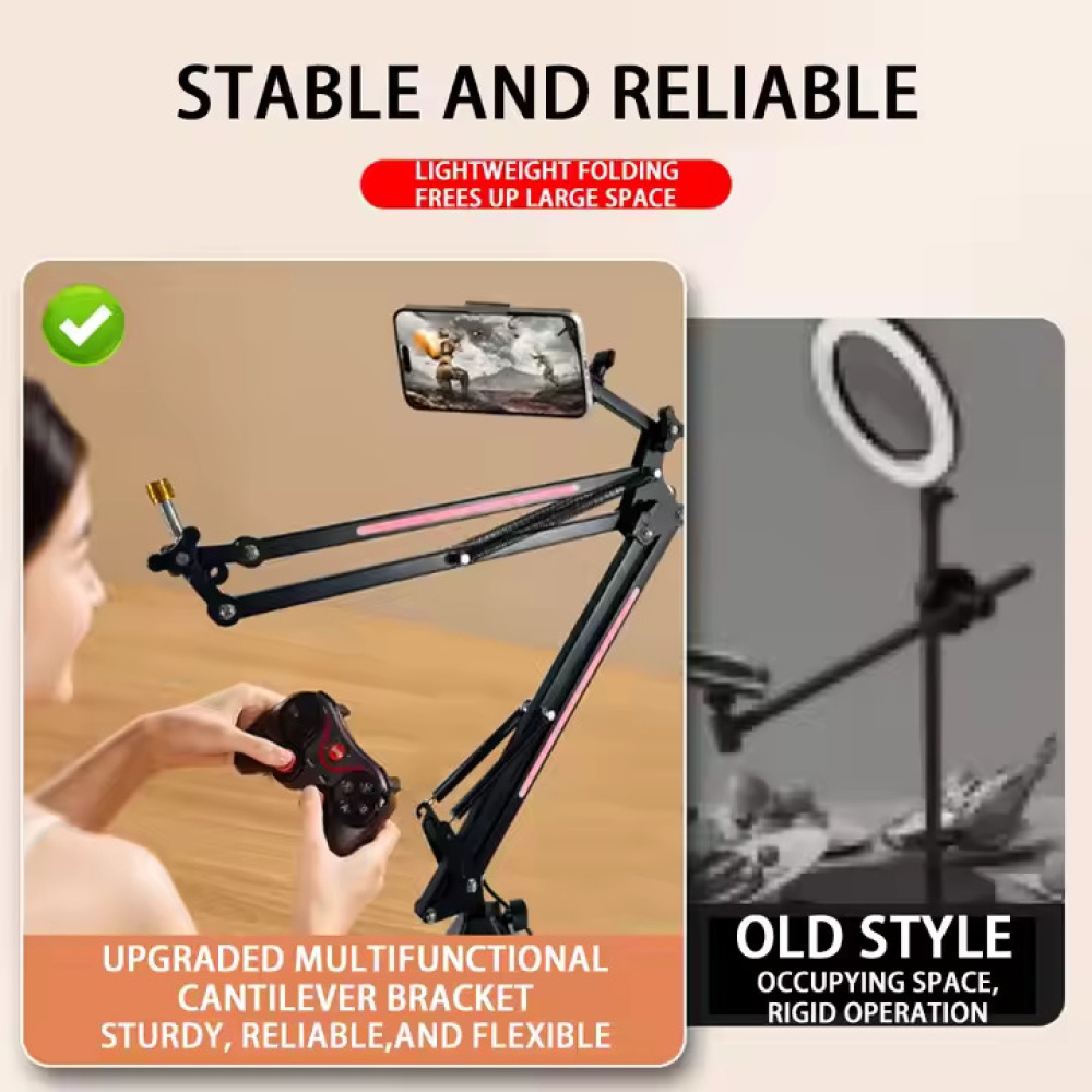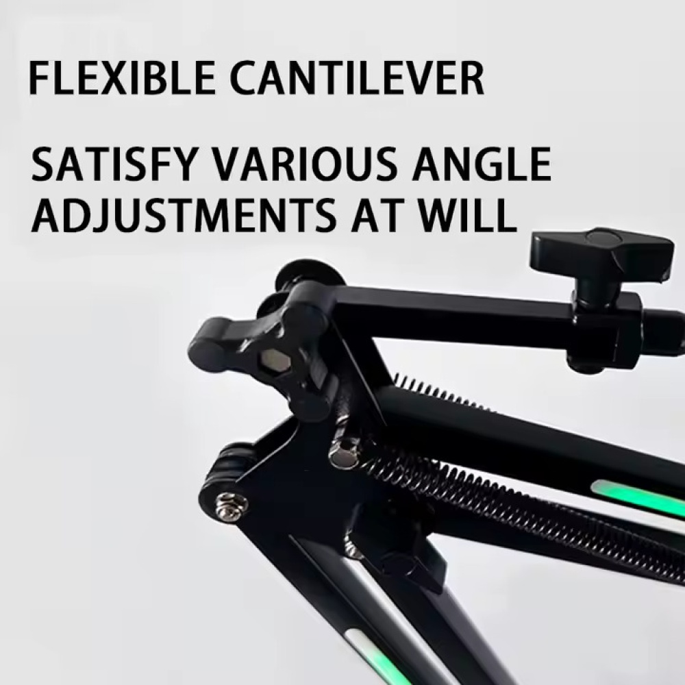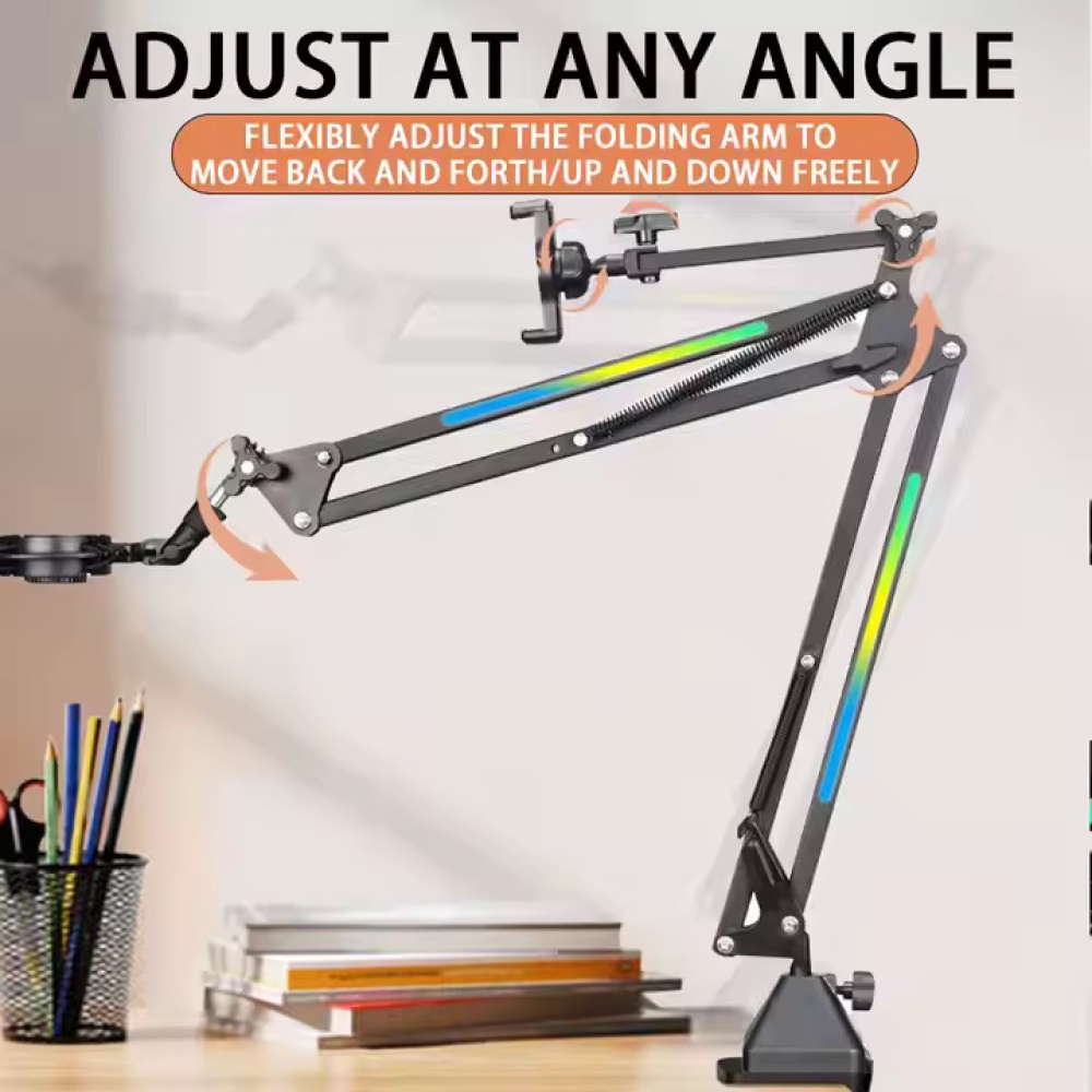 Upgrade your recording or live streaming setup with the RGB Lighting Cantilever Bracket, a multi-functional and adjustable microphone stand perfect for professionals and creators.