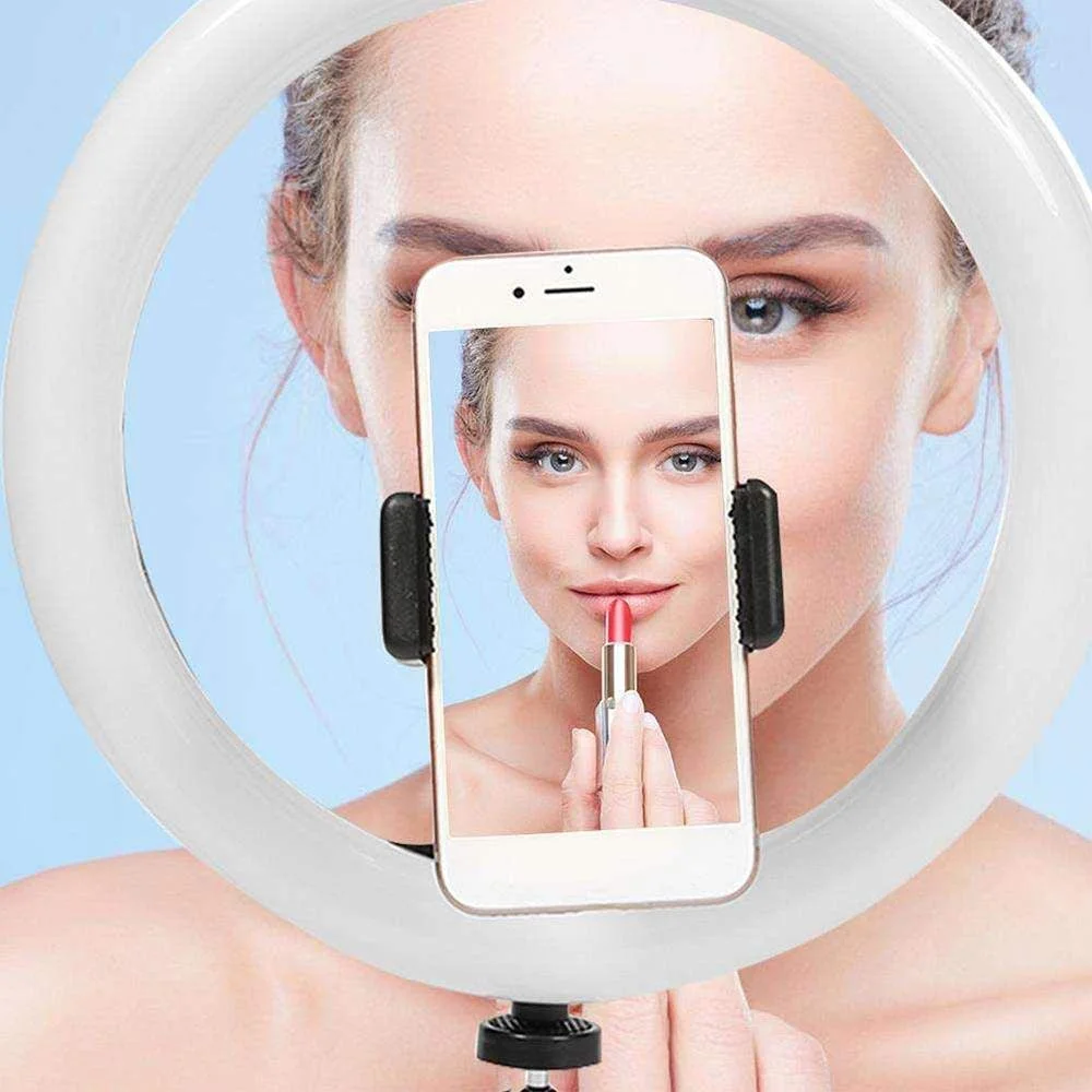 Enhance your photos, videos, live streams, and online meetings with this professional Ring LED Lamp, designed to deliver soft, even lighting with full control. Featuring adjustable brightness, color temperature, and a tall tripod stand, it is perfect for content creators, makeup artists, and everyday users.