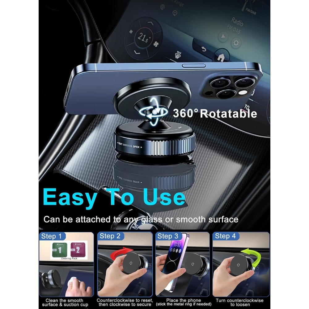 The strong vacuum magnetic suction base ensures that your phone holder stays firmly in place. With just a twist, it attaches securely to any smooth surface, and even on bumpy roads, it remains stable throughout your drive.