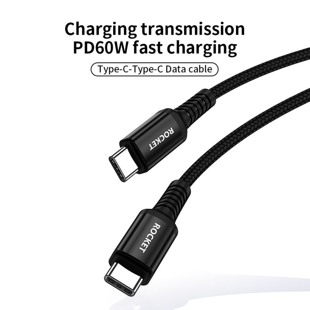 Fast Charging & Data Transfer: Enjoy fast charging and high-speed data transfer with the Rocket CA19 cable. The 1.2-meter Type-C to Type-C cable ensures your devices charge quickly and sync effortlessly.