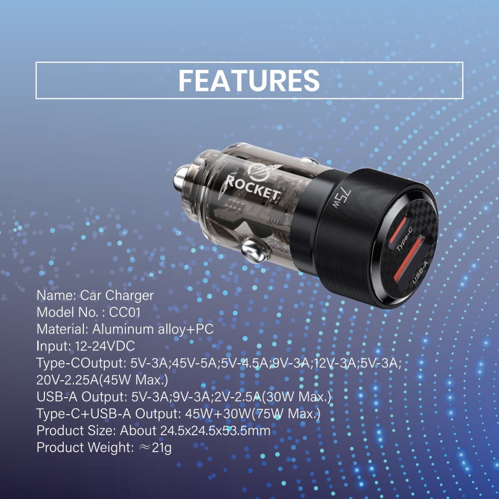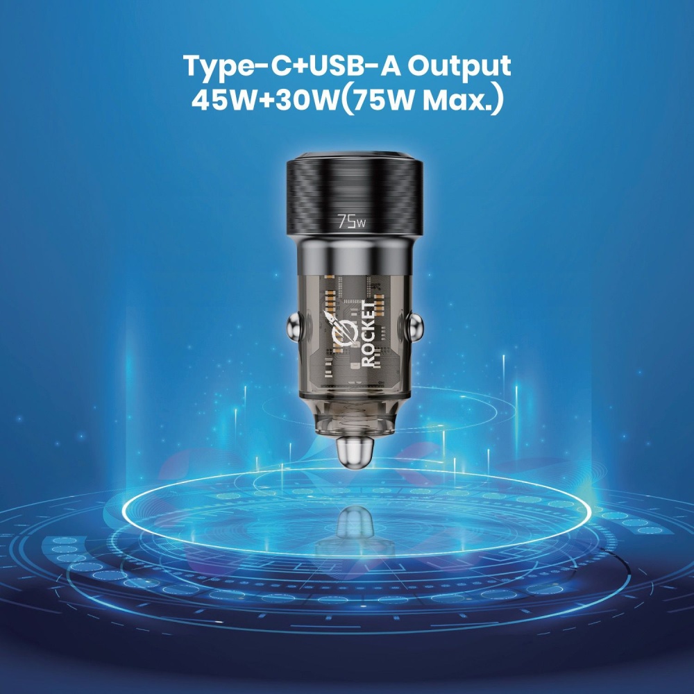 Rocket Transparent AC Car Phone Charger 75W Quick Charge - CC01